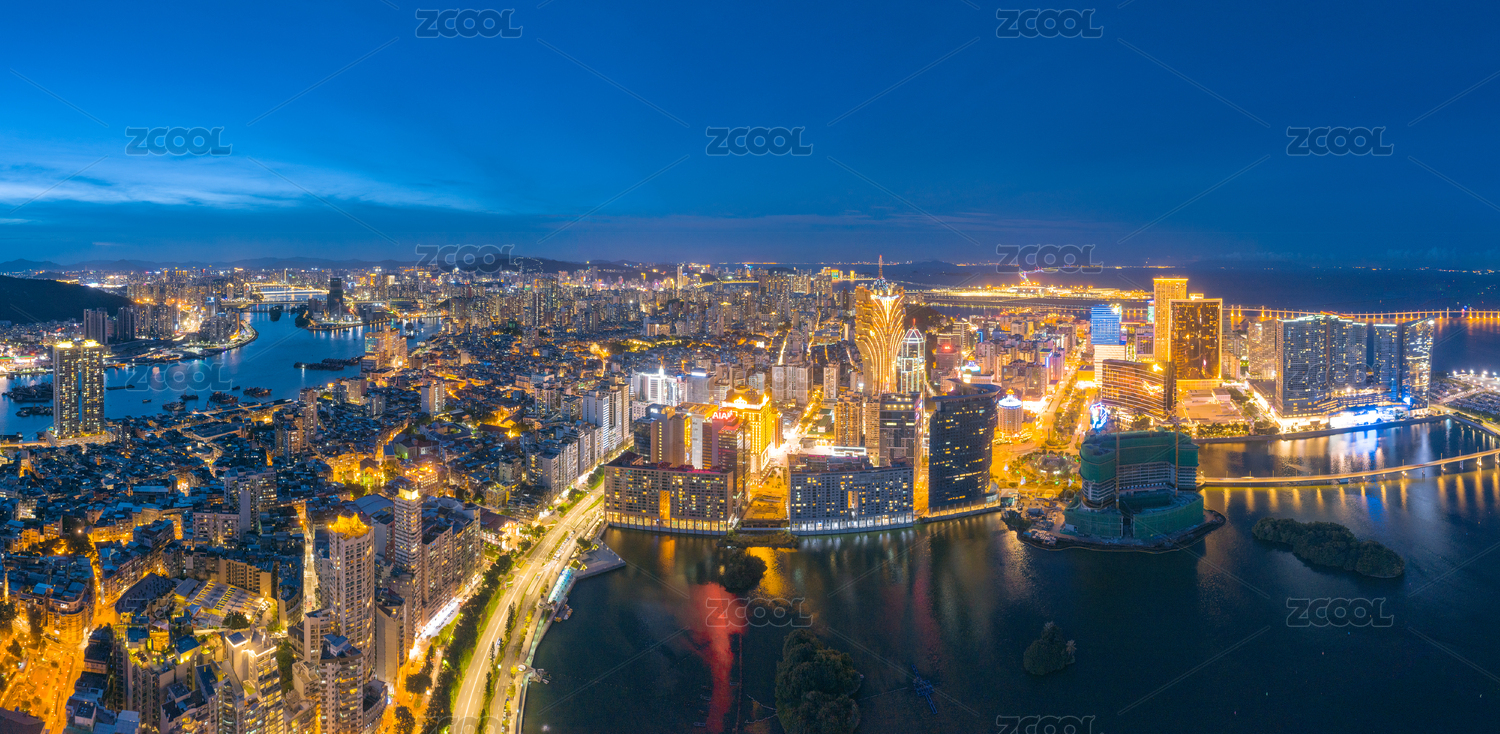 珠海日月贝海上歌剧院城市夜景航拍全景图