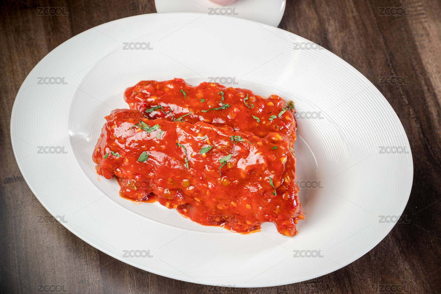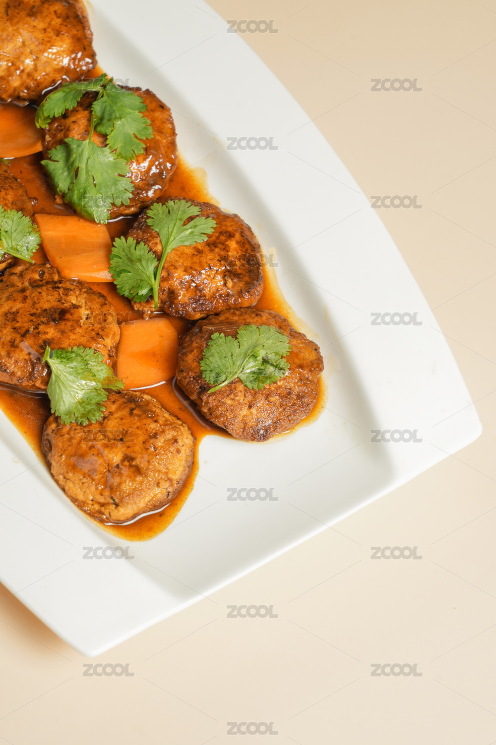 餐桌,木质,陶瓷,盘子,汤汁,肉丸,浇汁,番茄酱,猪肉,丸子