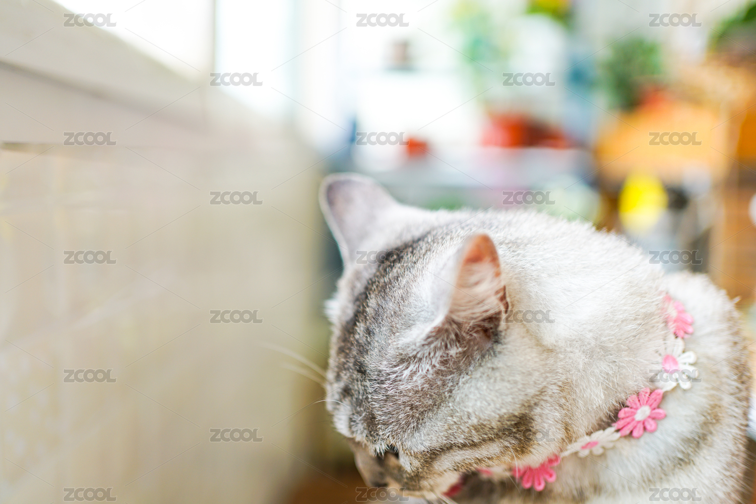 脖子,戴着,花环,灰色,斑纹,猫,趴,椅子,中国,宠物