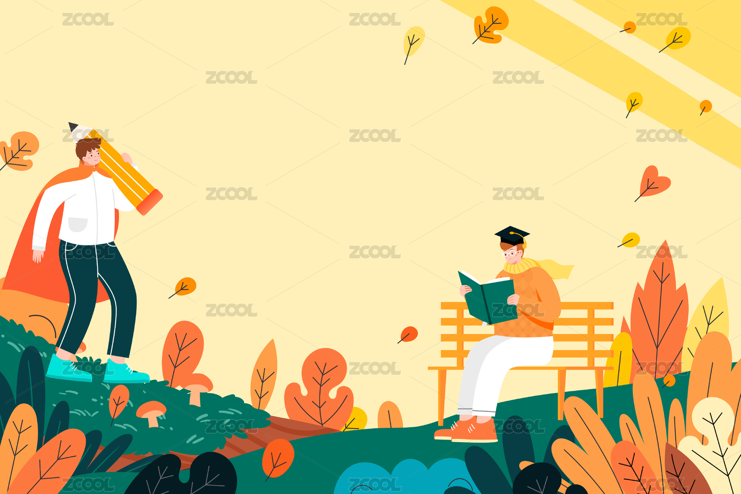 秋天草地上的教育矢量插画