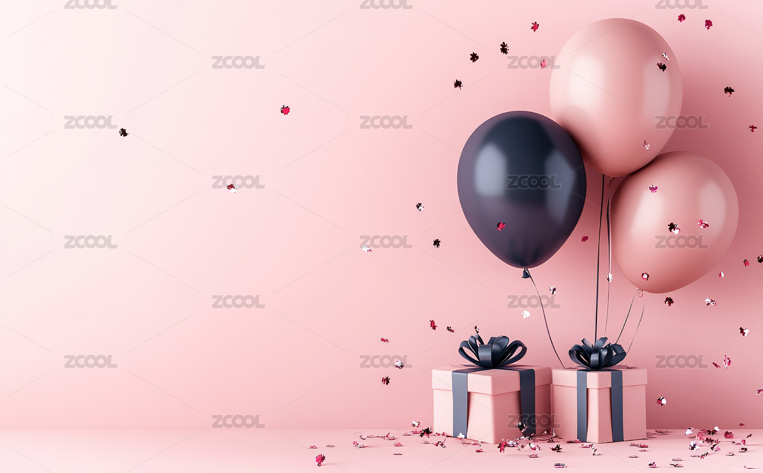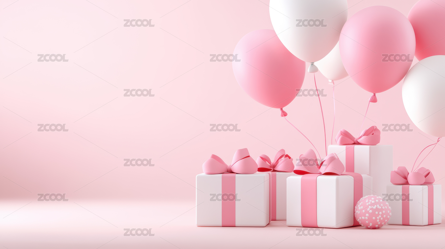 气球和礼物盒粉色调背景图