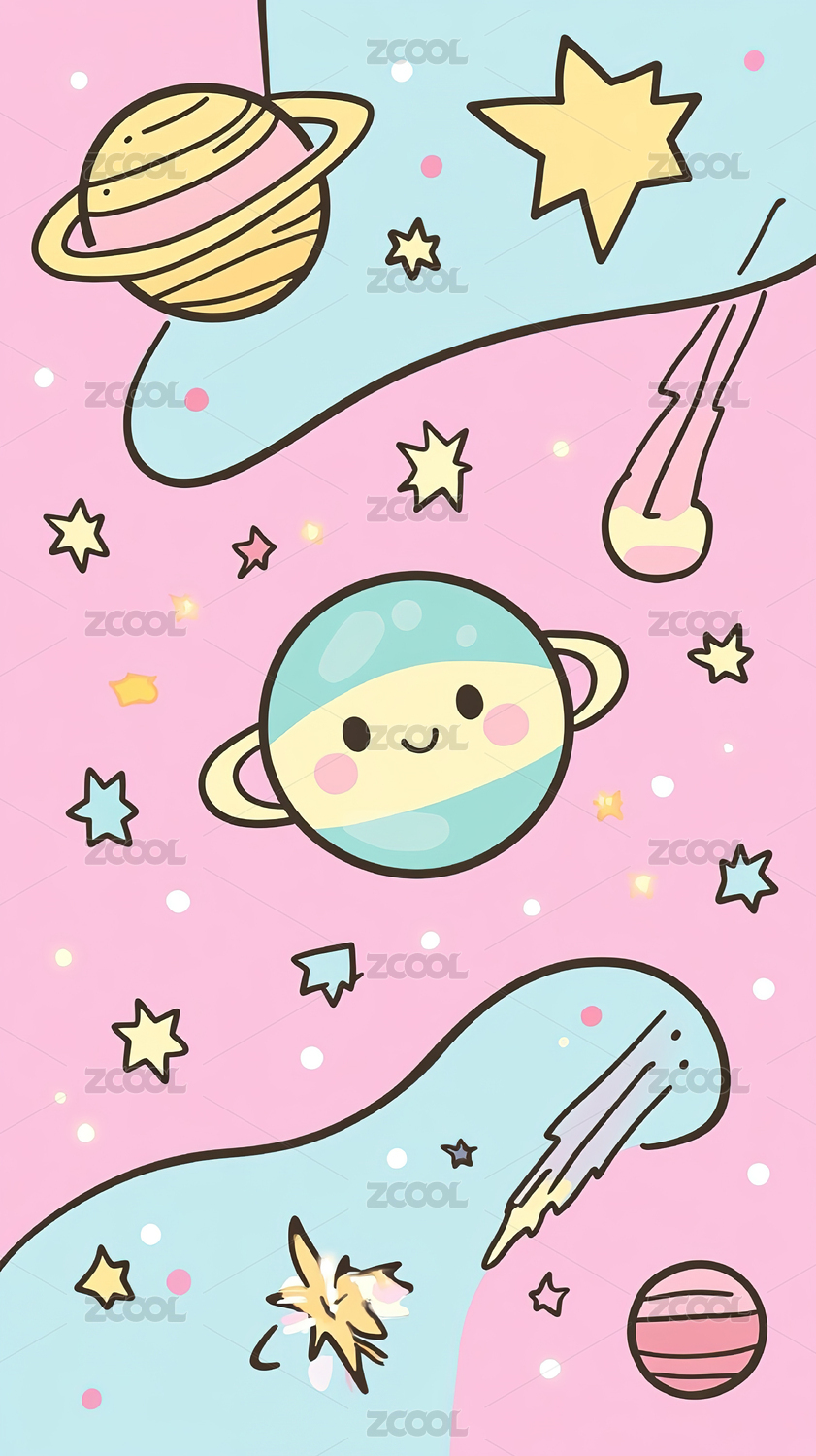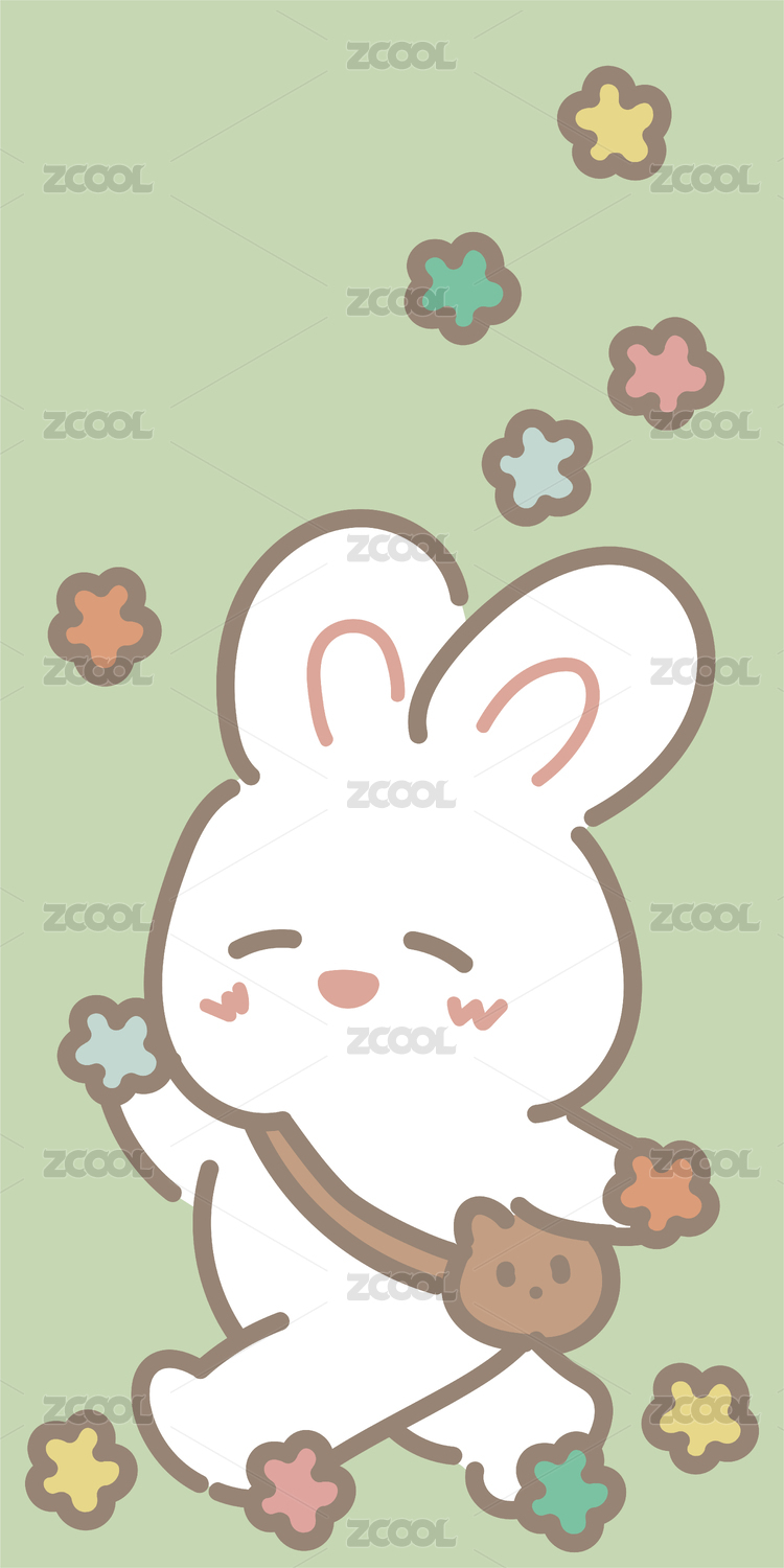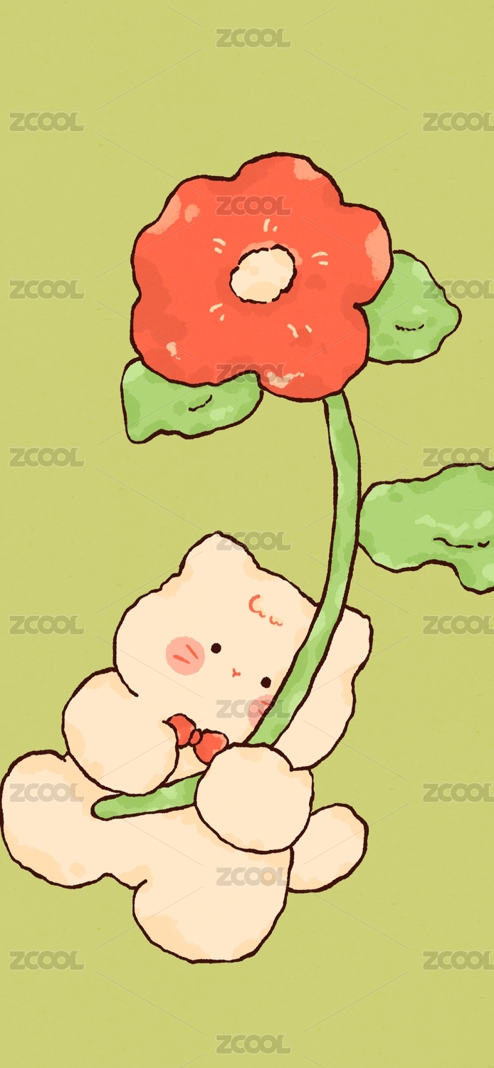 郁金香花朵可爱卡通小熊手机壁纸插画