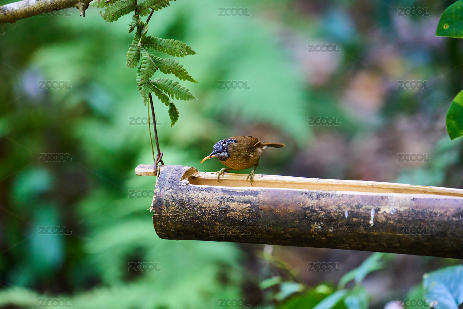 一只栖息于阔叶林缘灌丛中觅食的棕颈钩嘴鹛