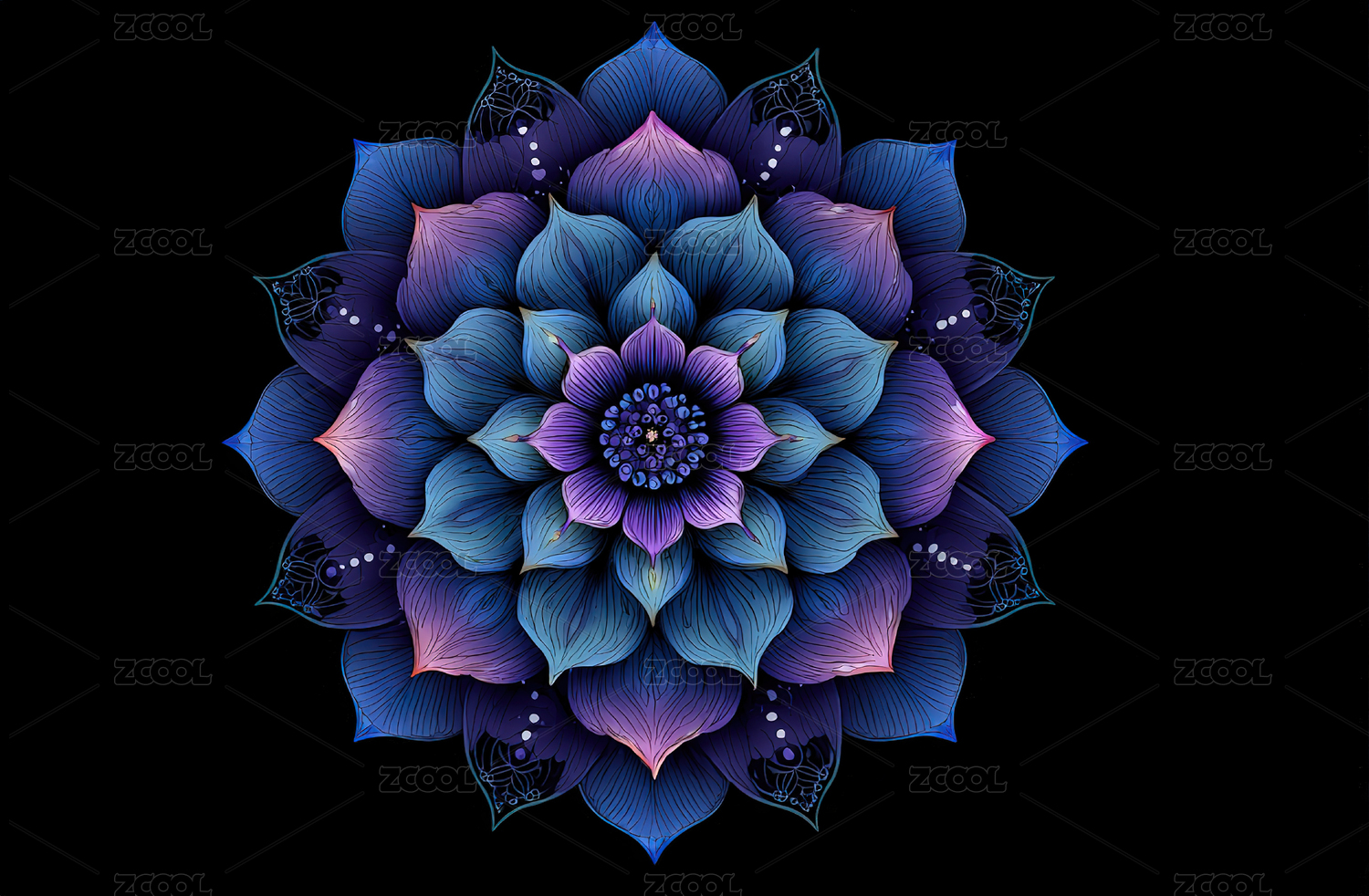 深蓝紫色渐变的对称花瓣图案