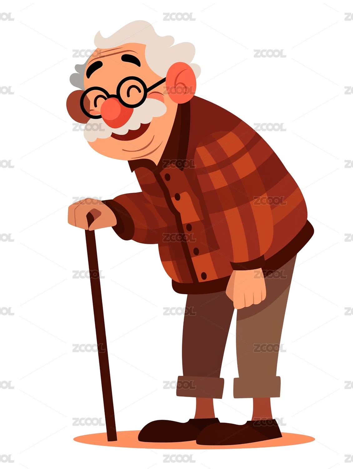 拄着拐棍的老人矢量插画