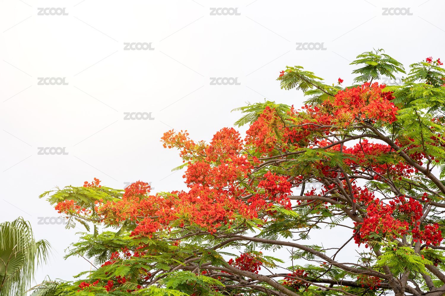 云南玉溪绿汁镇蓝天白云高山凤凰花
