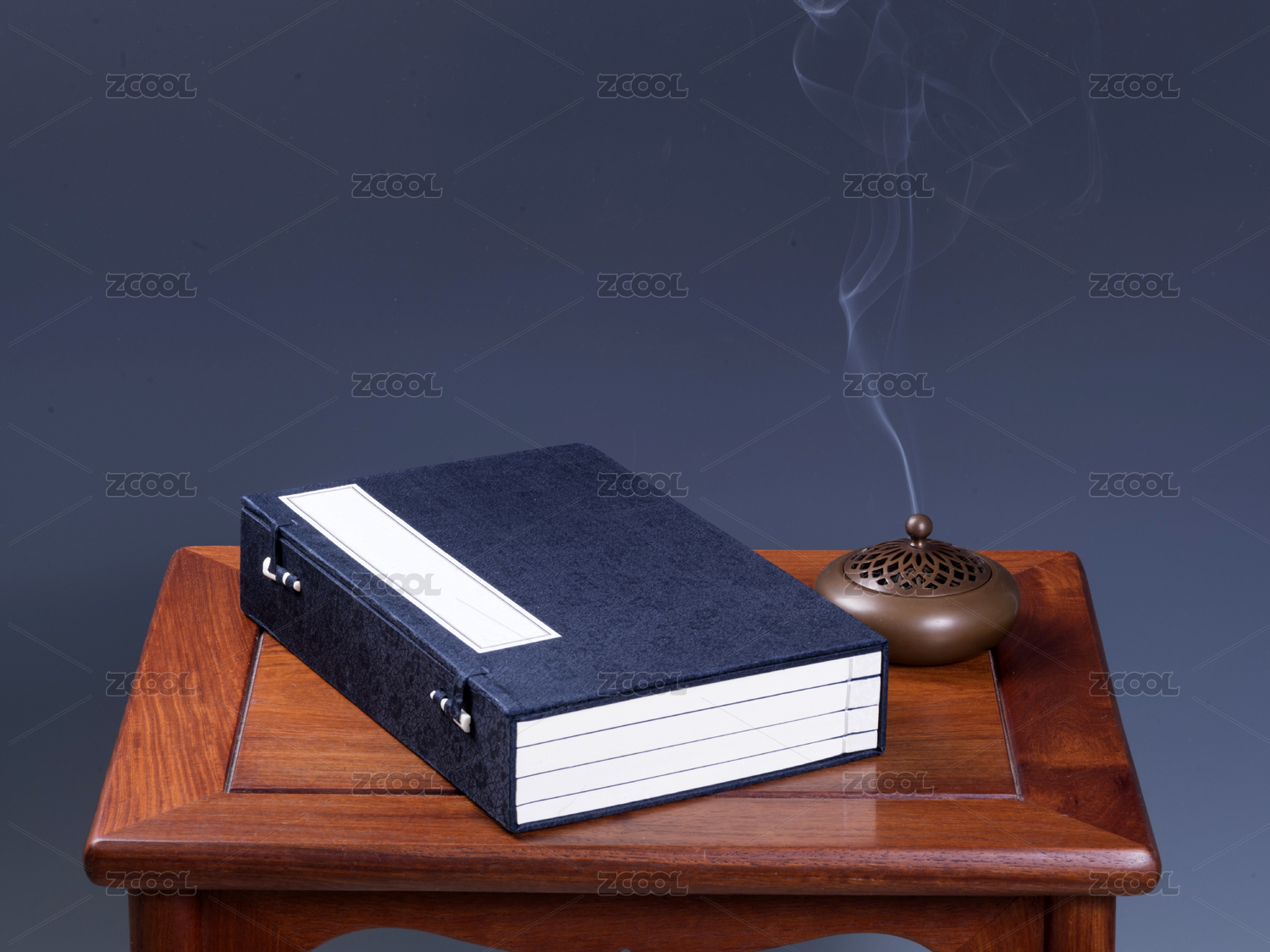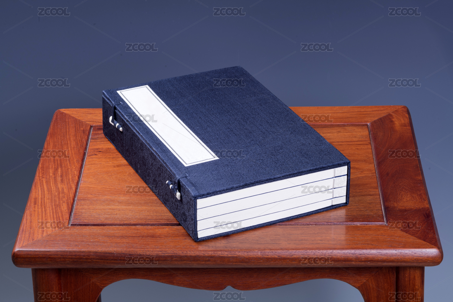 摆放在红木桌子上的线装书