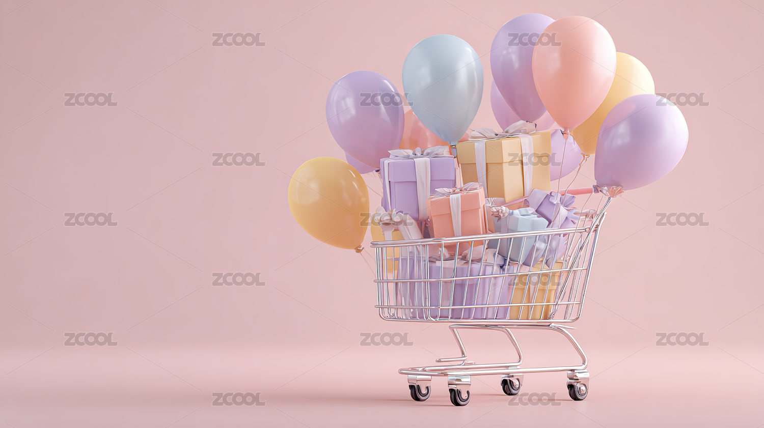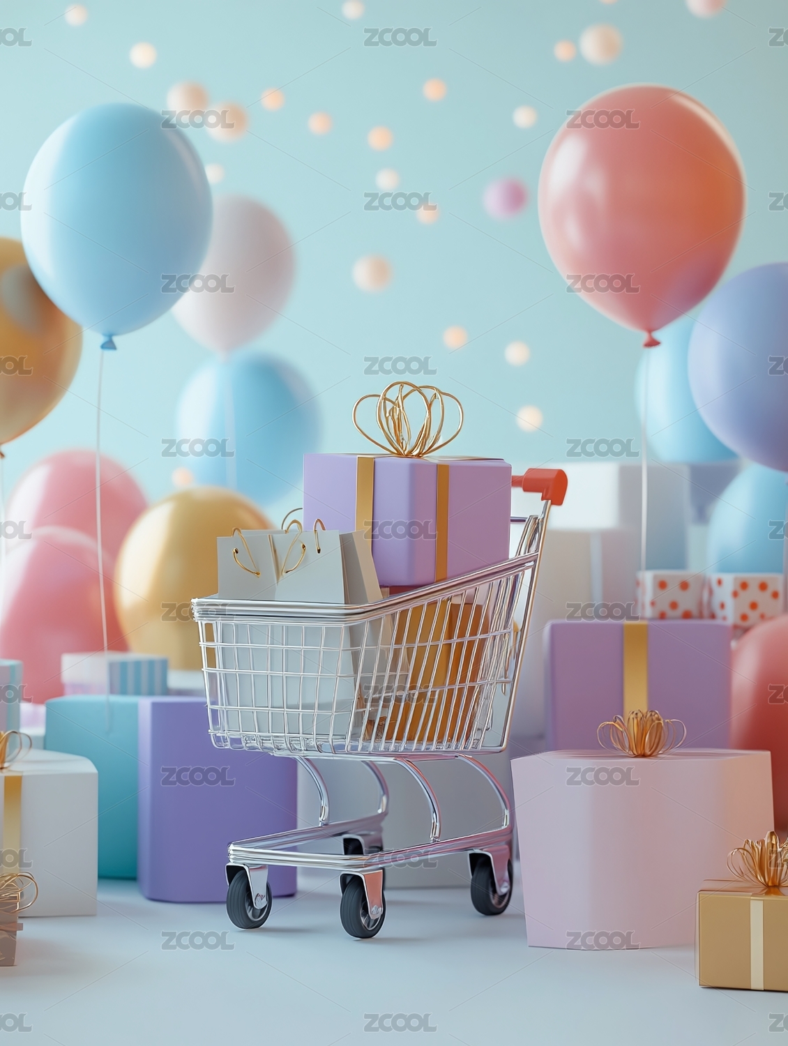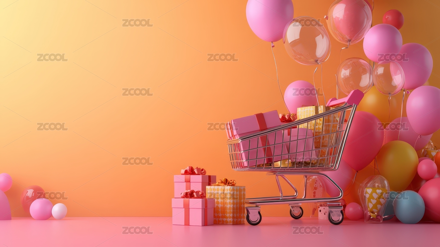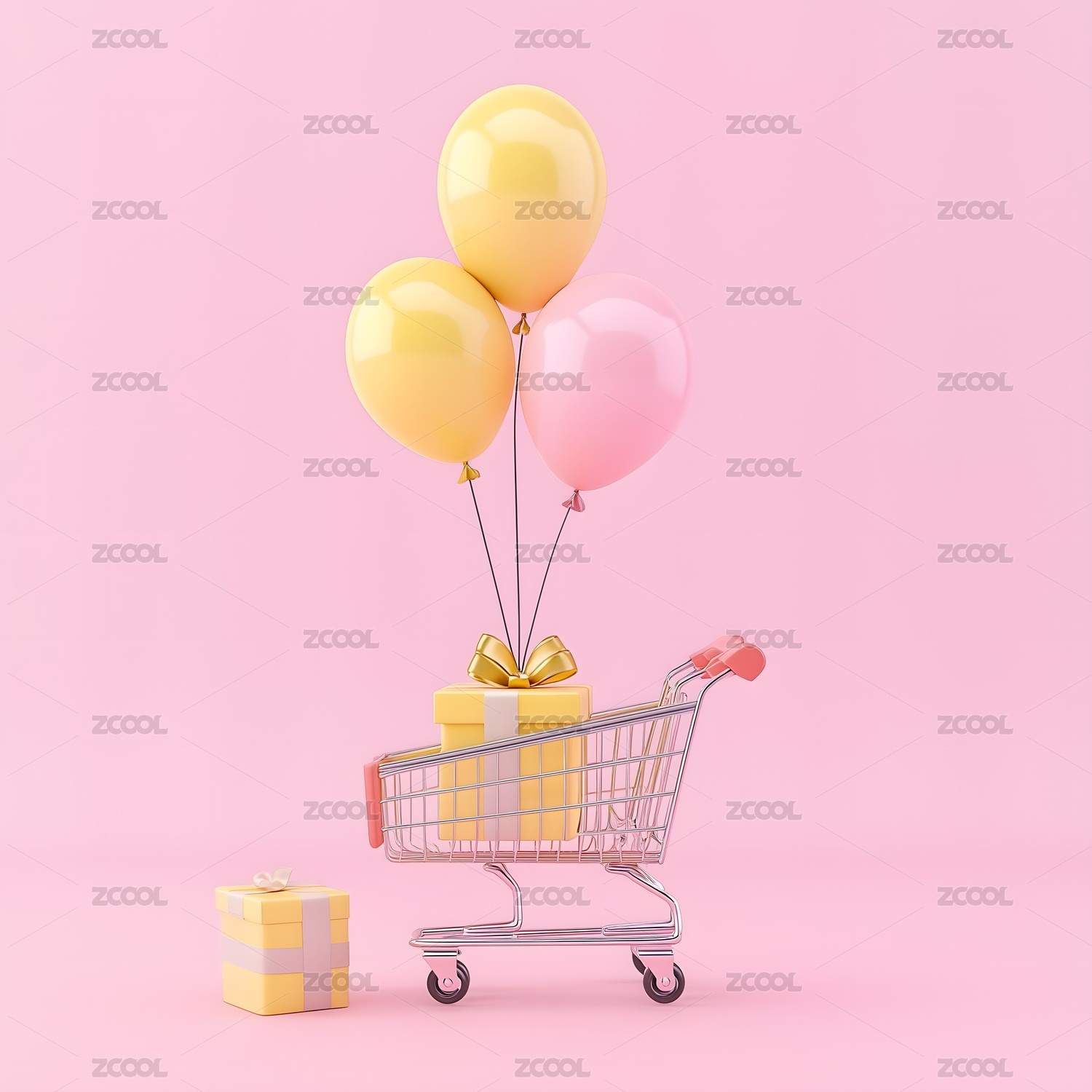 购物节,购物车,活动,插画,黄色背景,气球,电商,促销
