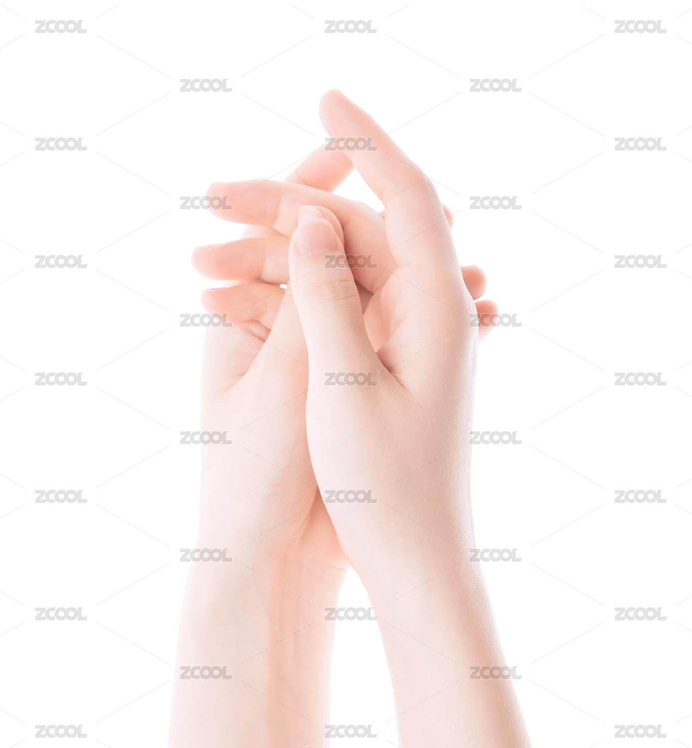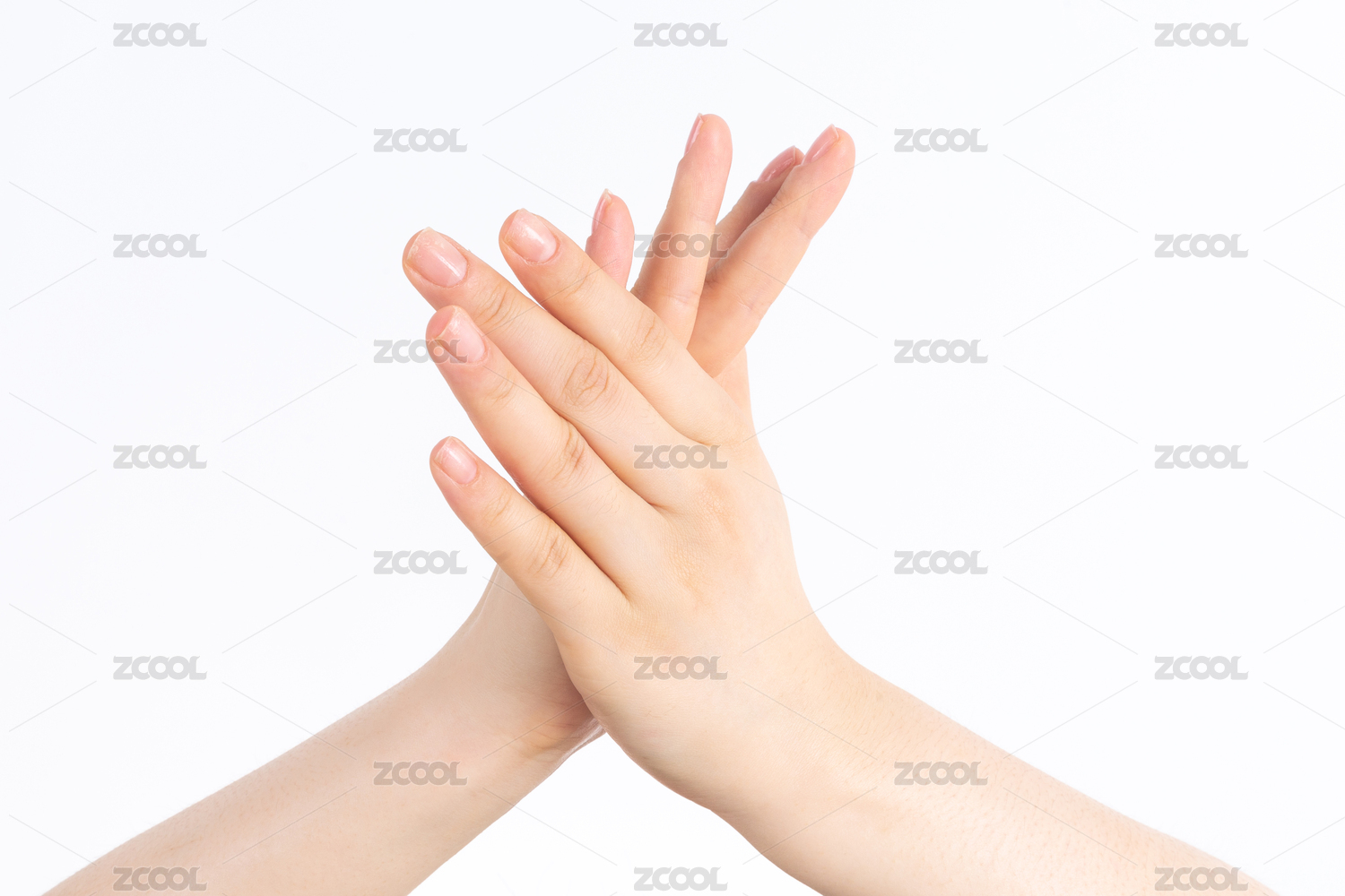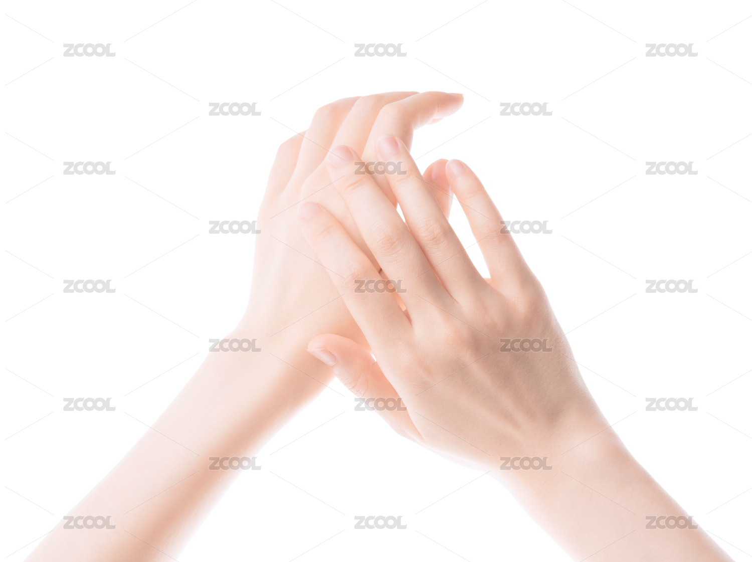 白色背景前,洗手或者鼓掌的女性手臂手势
