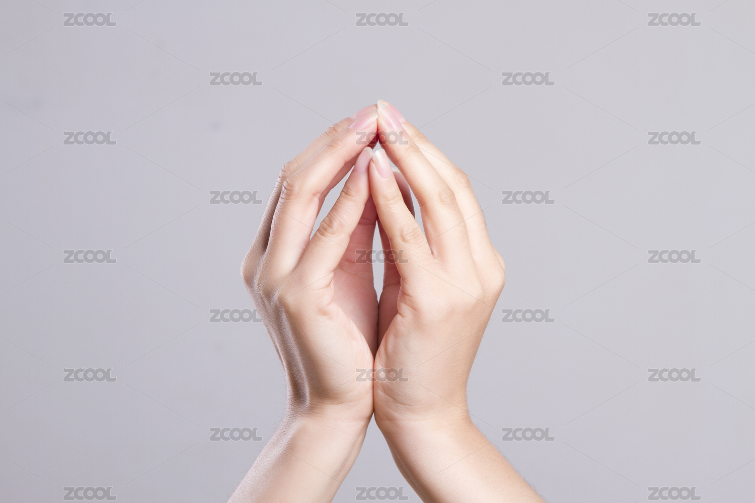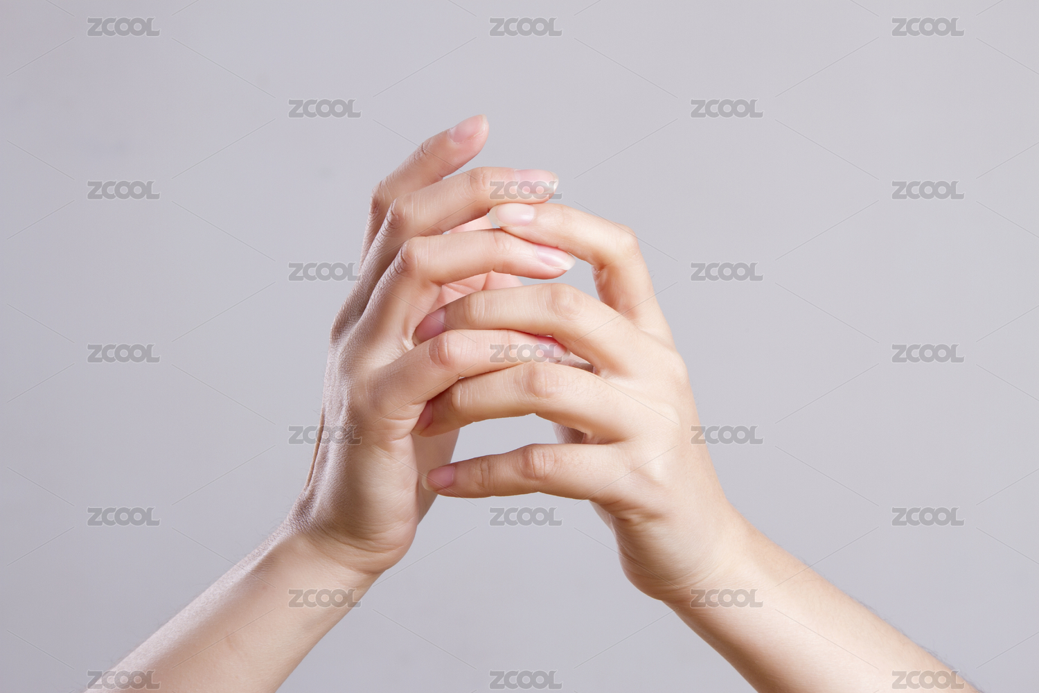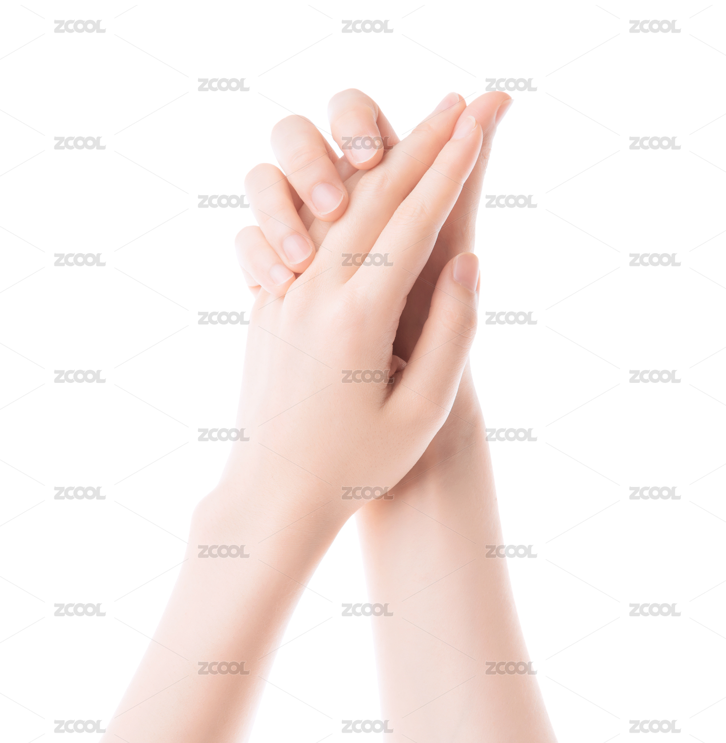 白色背景前,洗手或者鼓掌的女性手臂手势
