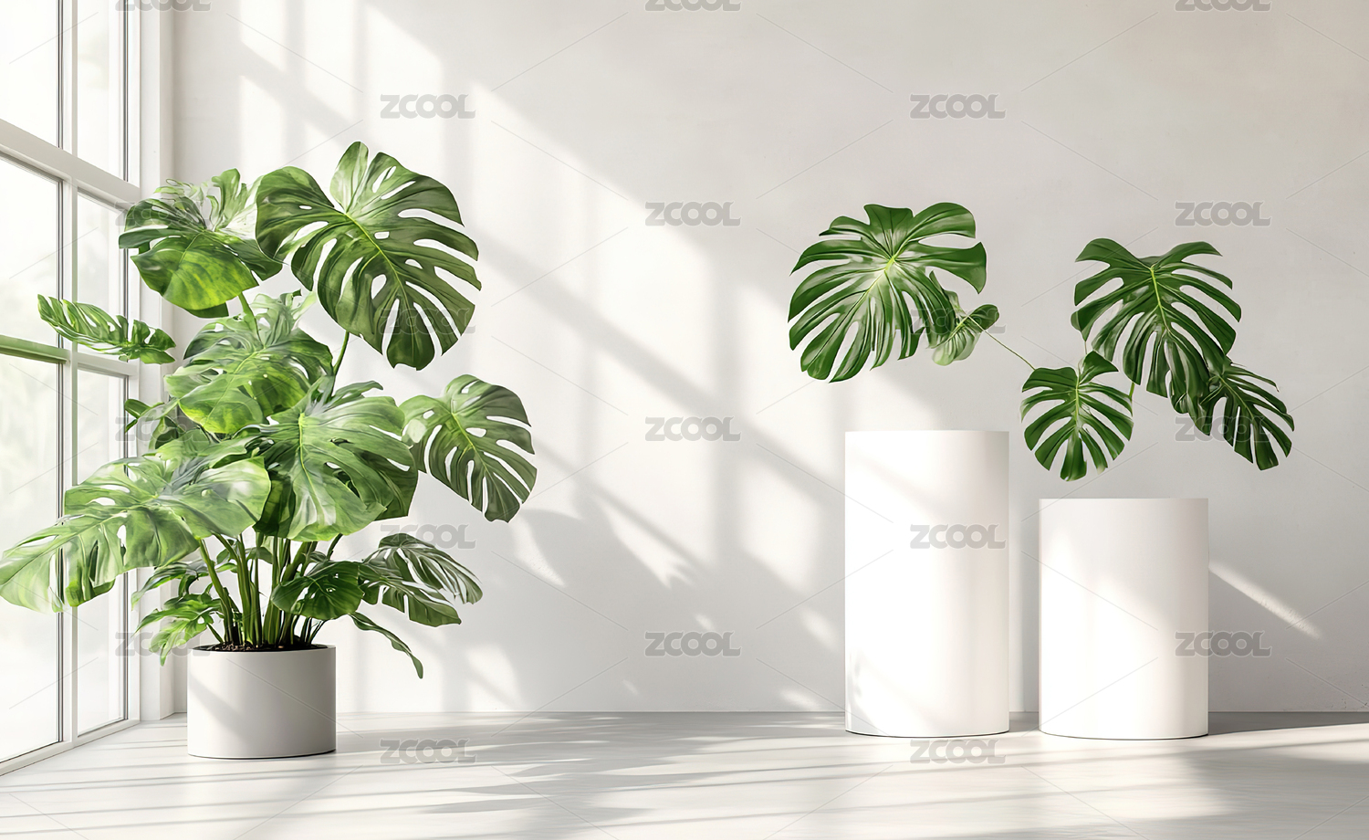 两盆绿植清新室内装饰