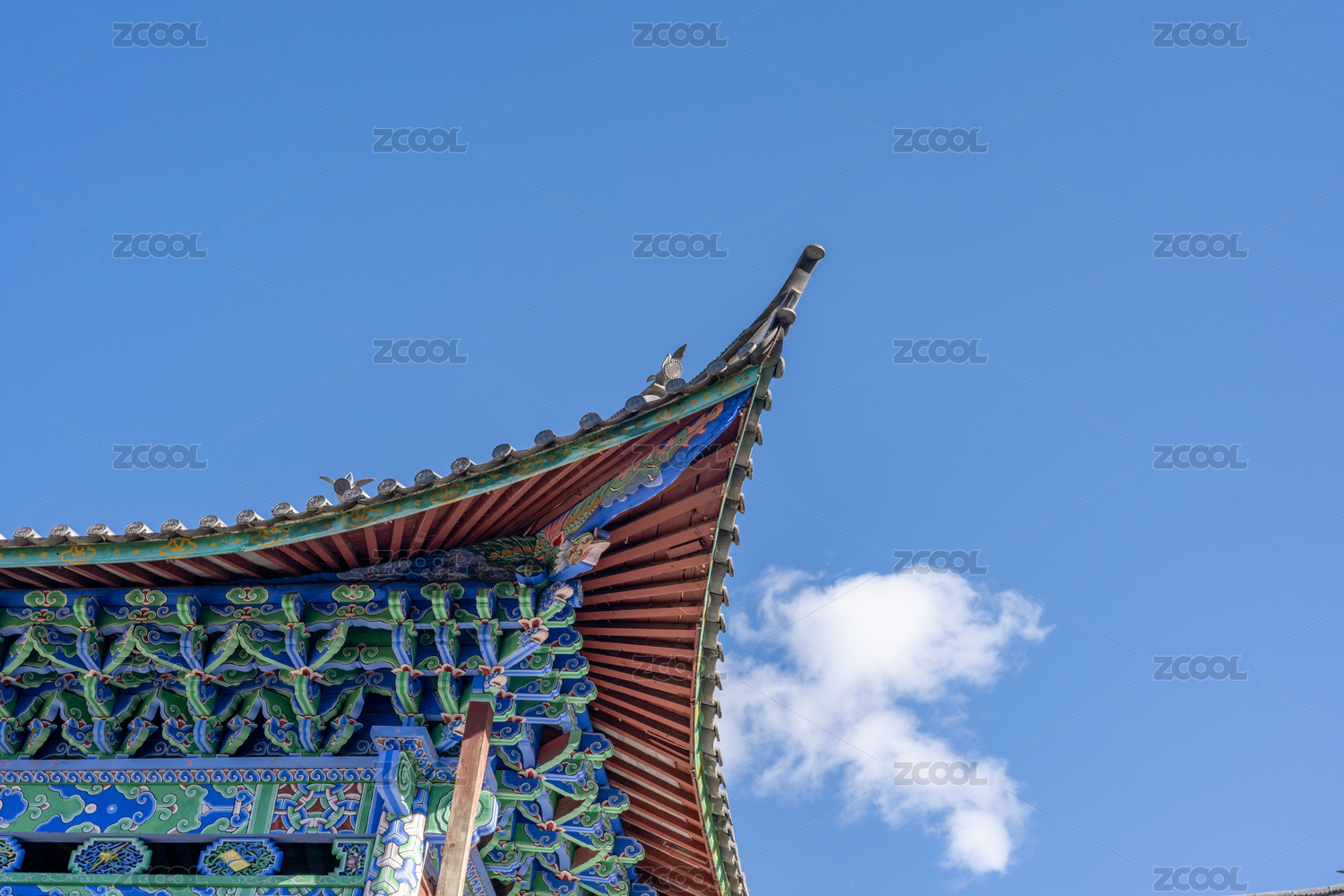 古建筑,屋檐,蓝天,白云,天空,仰拍