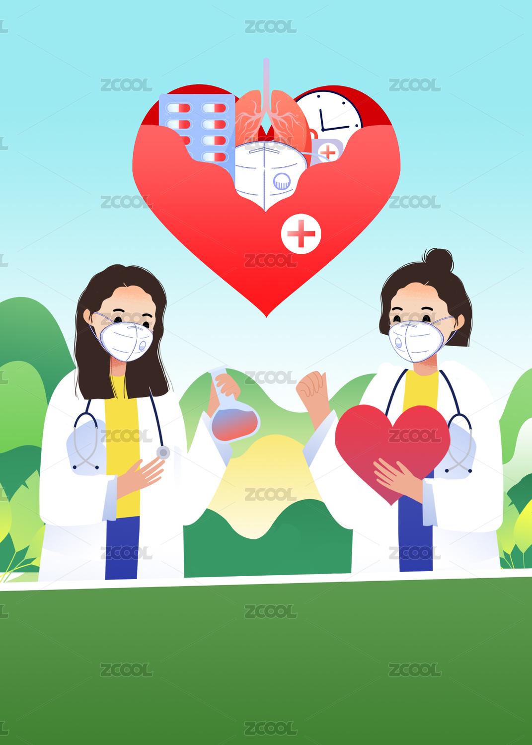 健康医疗医护卡通插画