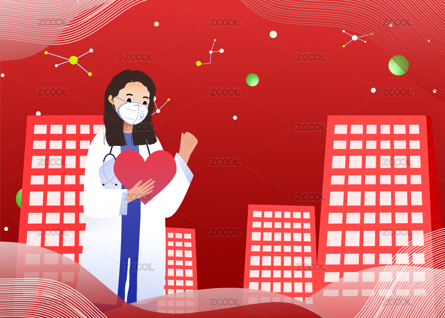 医生拿着爱心守护健康卡通插画