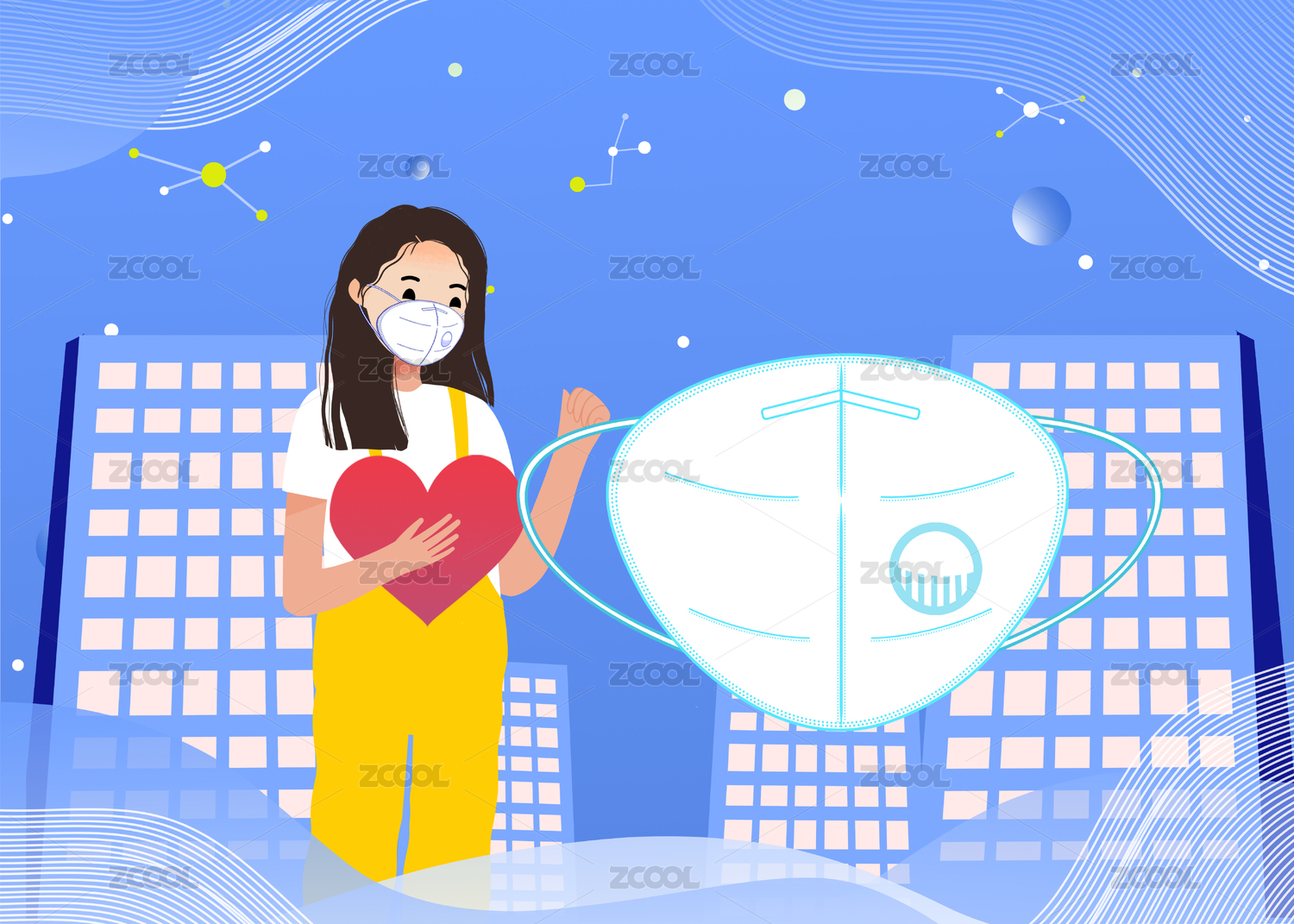 插画,卡通,流感,感冒,疫情,预防,保护,生命,健康,肺炎