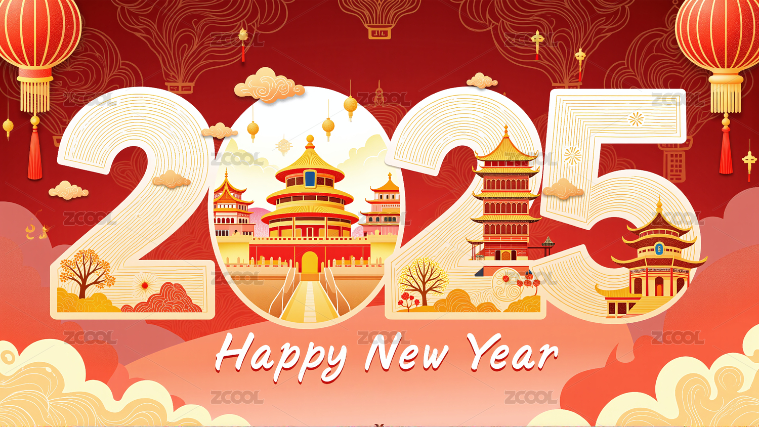 2025中国风背景新年插画
