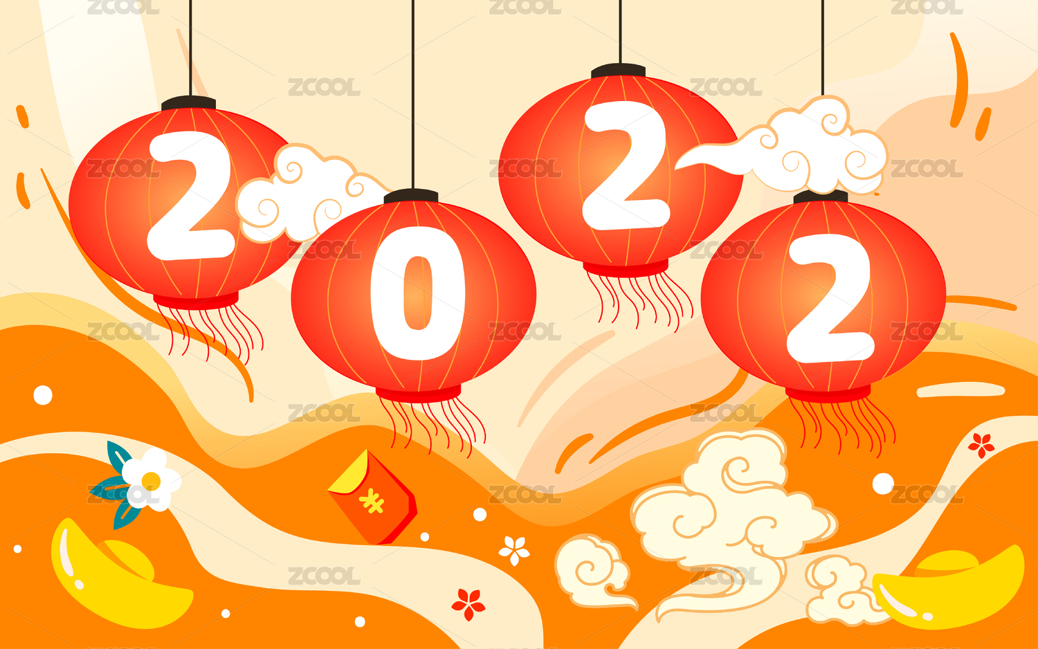 2022春节灯笼背景插画虎年新年喜庆海报
