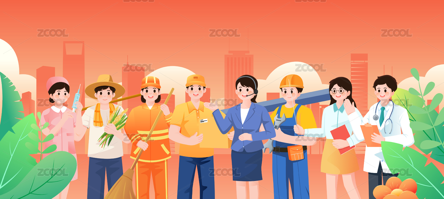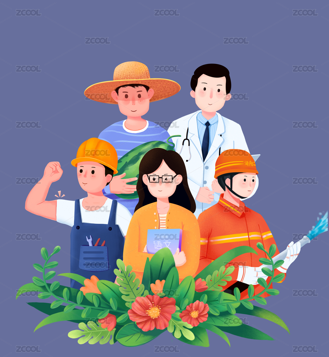 五一劳动节致敬职业劳动者插画人物劳动海报