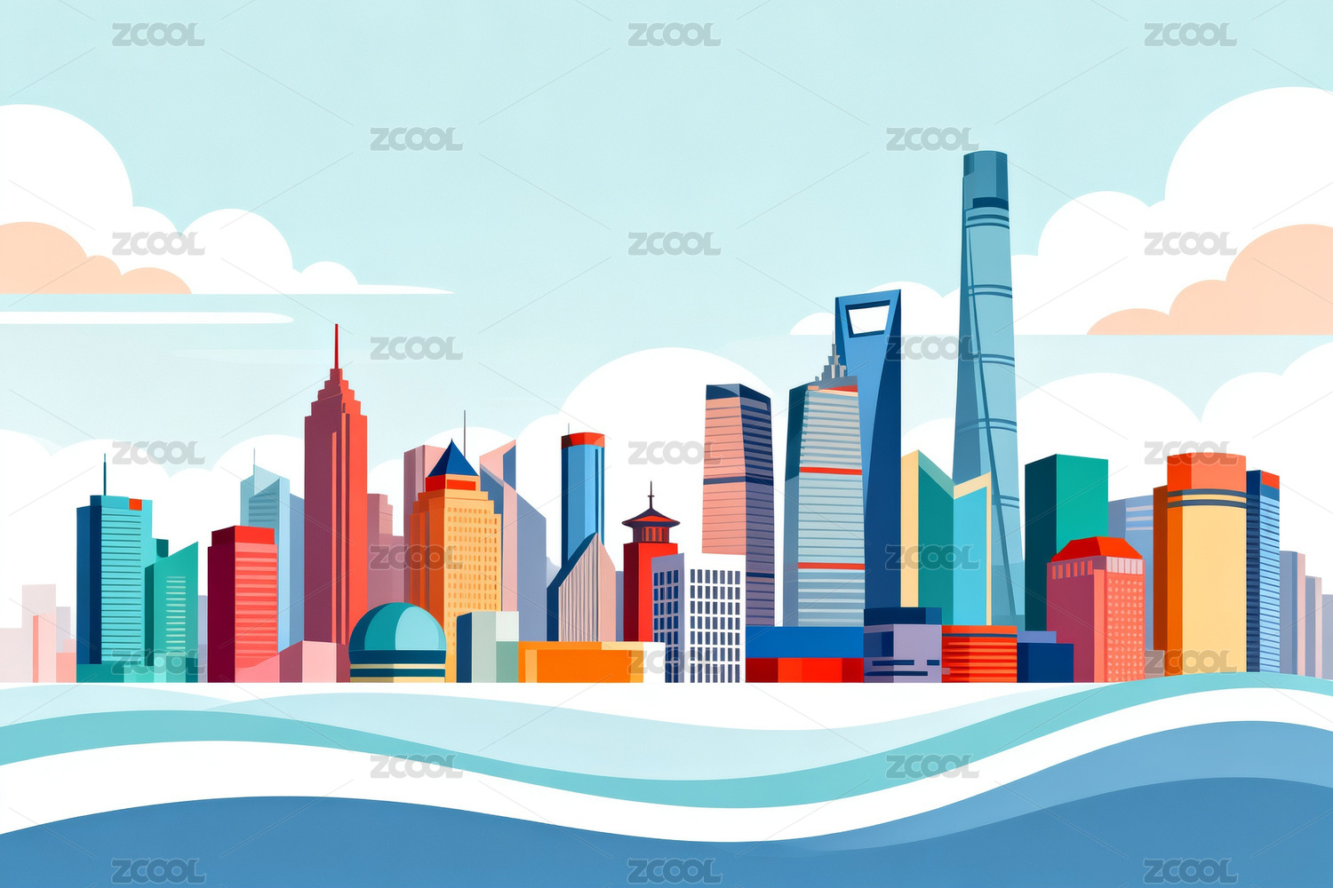 多彩城市天际线插画