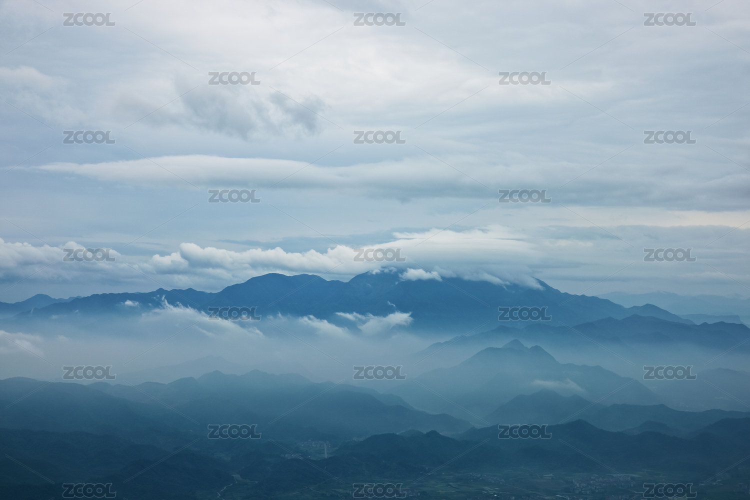 厚厚云层下的山峰