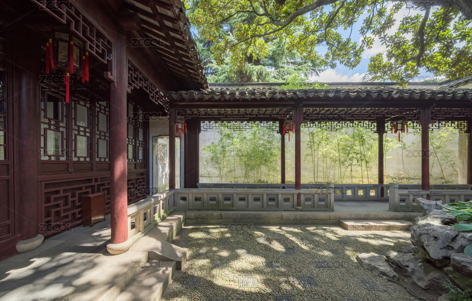 苏州拙政园的连廊和走廊,中式古典建筑元素