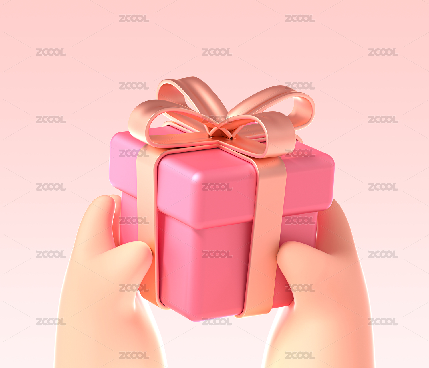 3D渲染绑着蝴蝶结渐变粉色情人节可爱礼盒