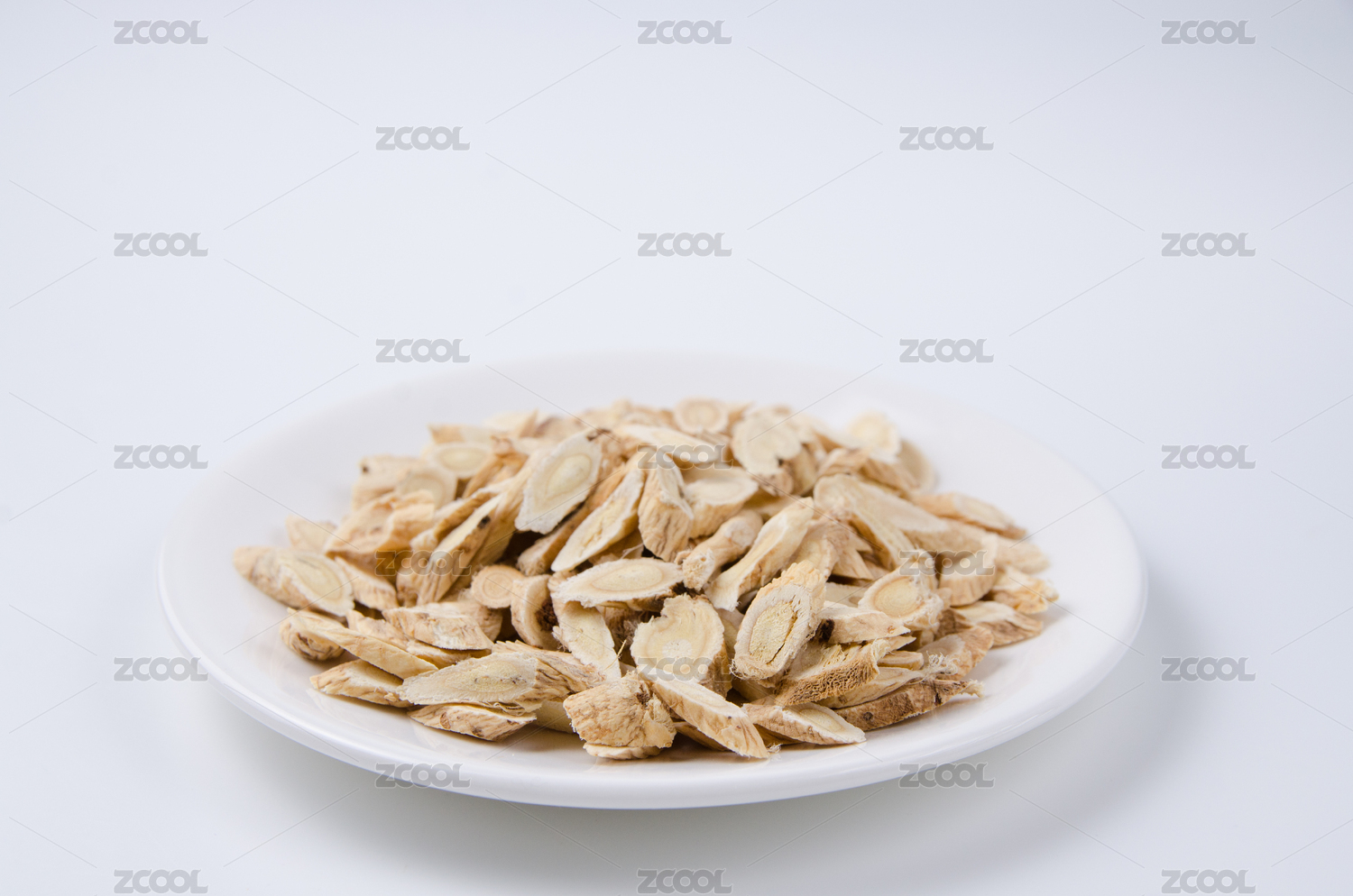 白底背景上的黄芪切片
