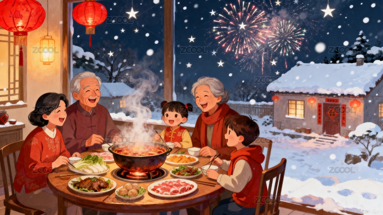 一家人,团圆,家宴,团圆饭,火锅,吃火锅,丰盛,热闹,冬季,冬天