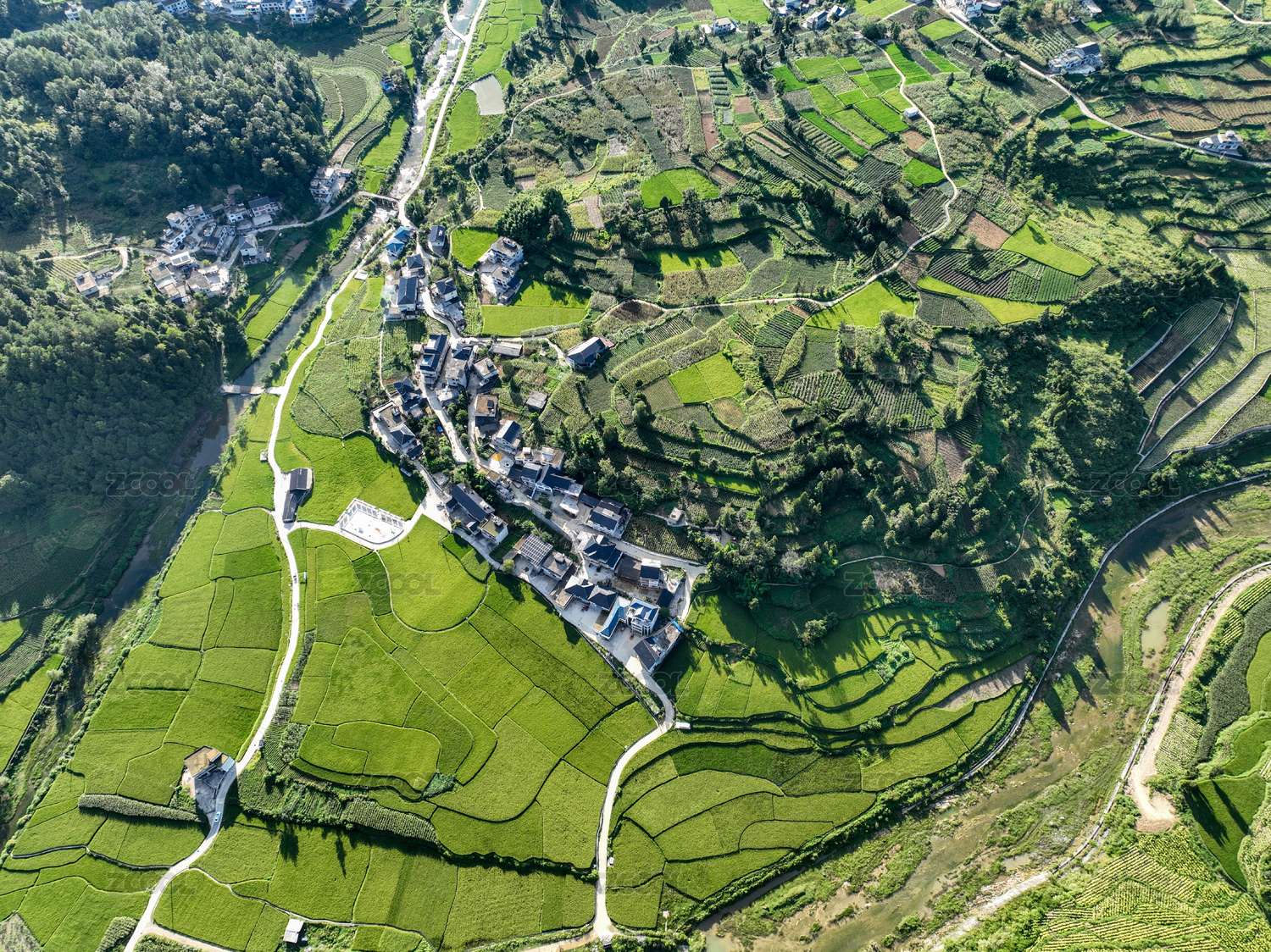 云南,云贵高原,梯田,农业,山地,航拍,春分,村落,传统村落,白天