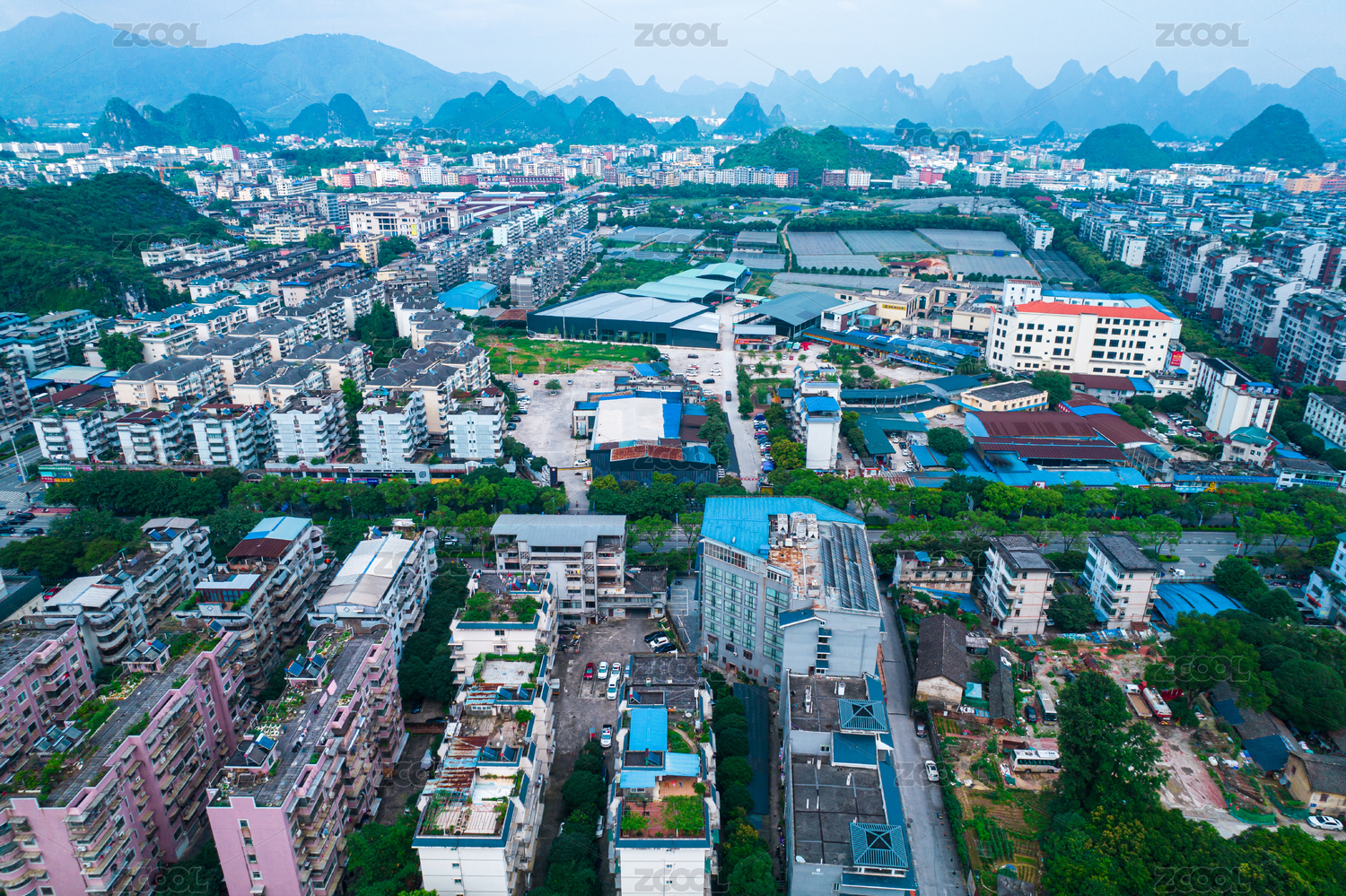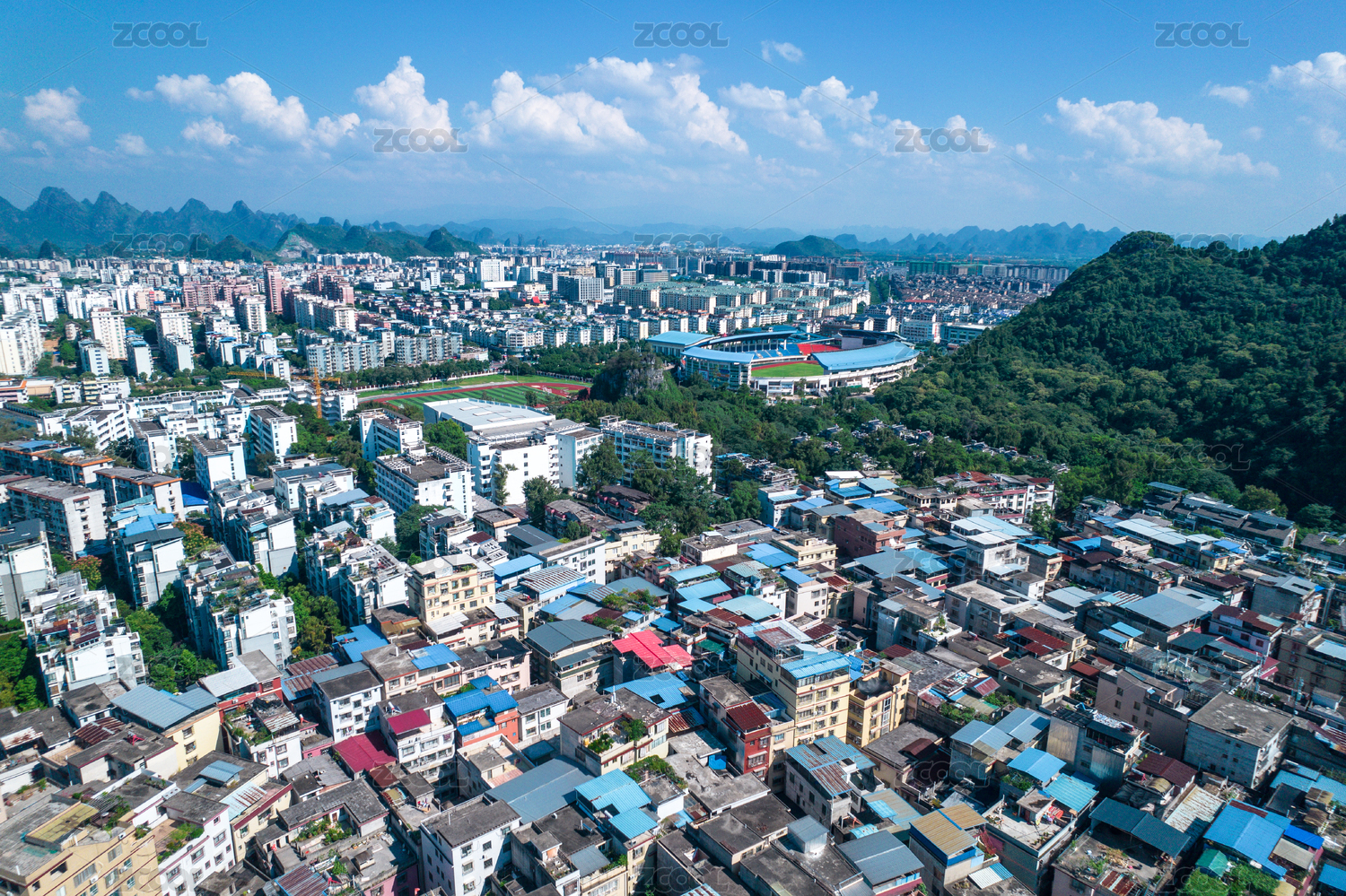 中国广西柳州城市航拍风光柳江两岸高楼建筑