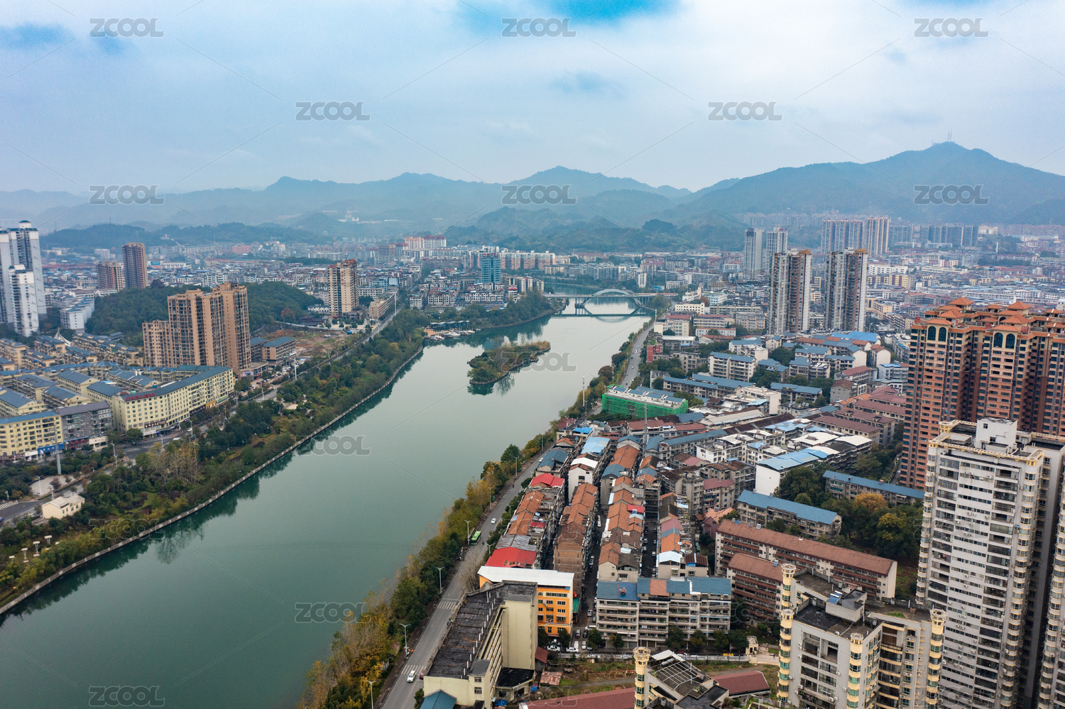 俯瞰绍兴市上虞区曹娥江及曹娥街道