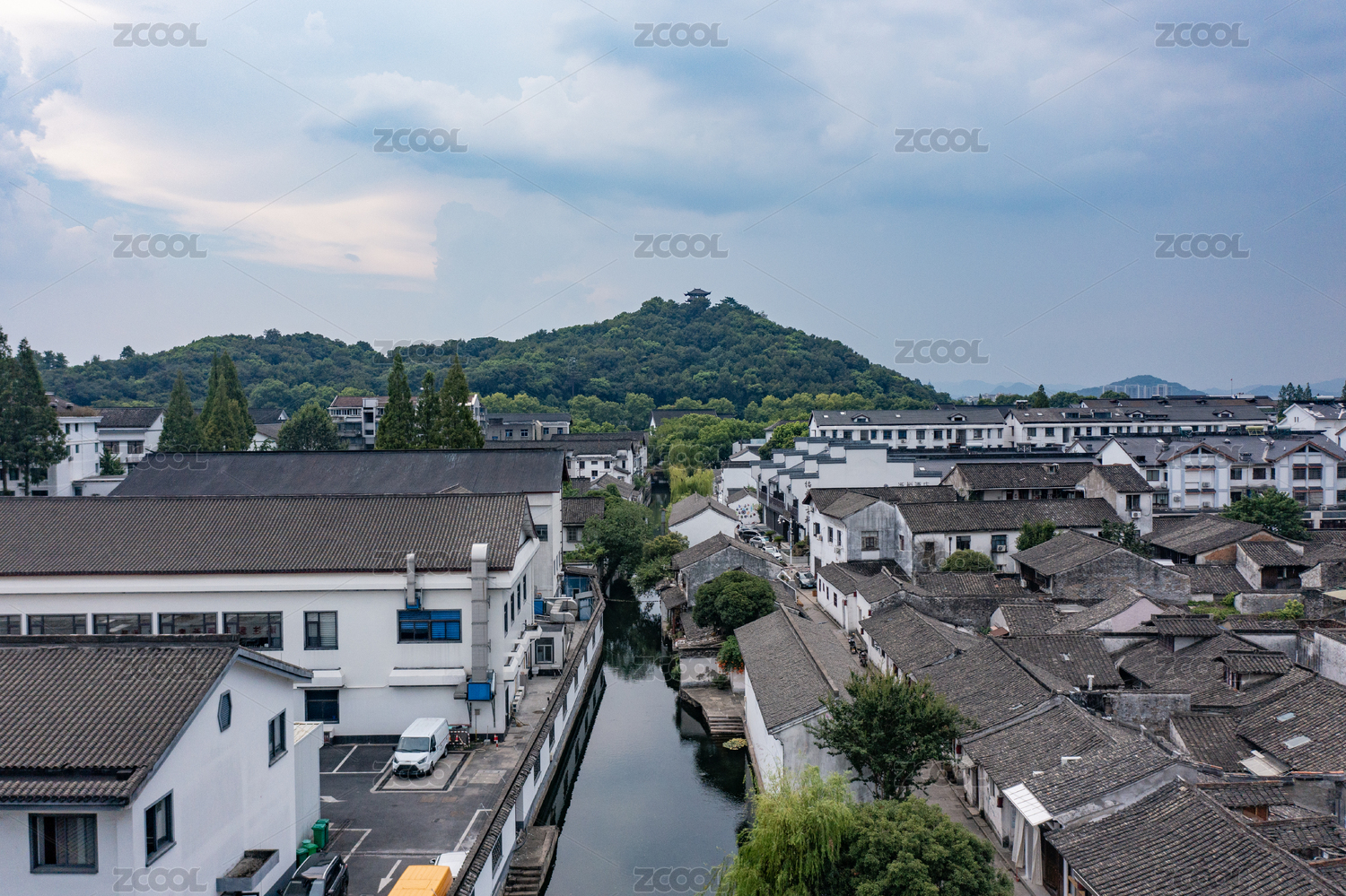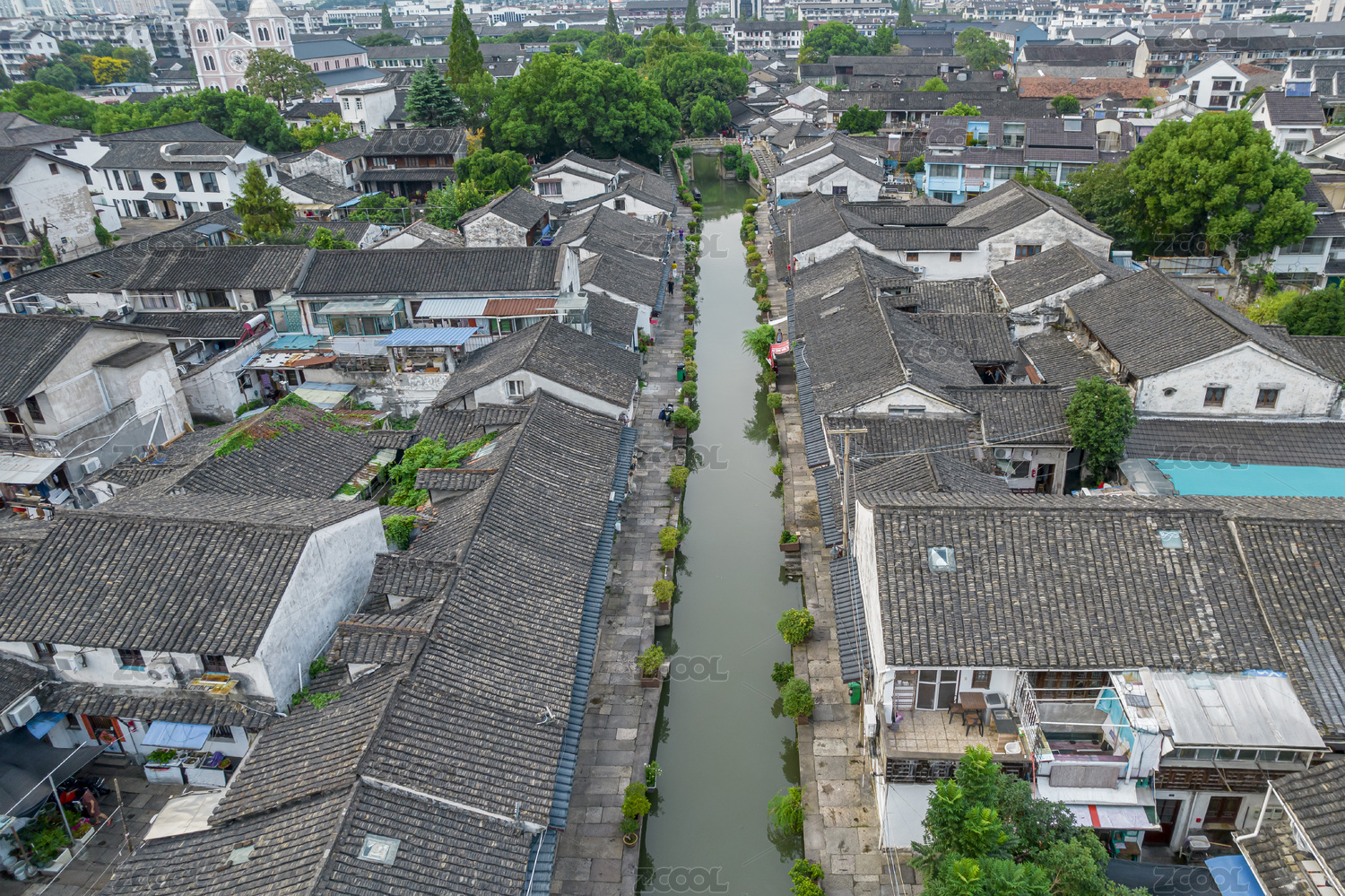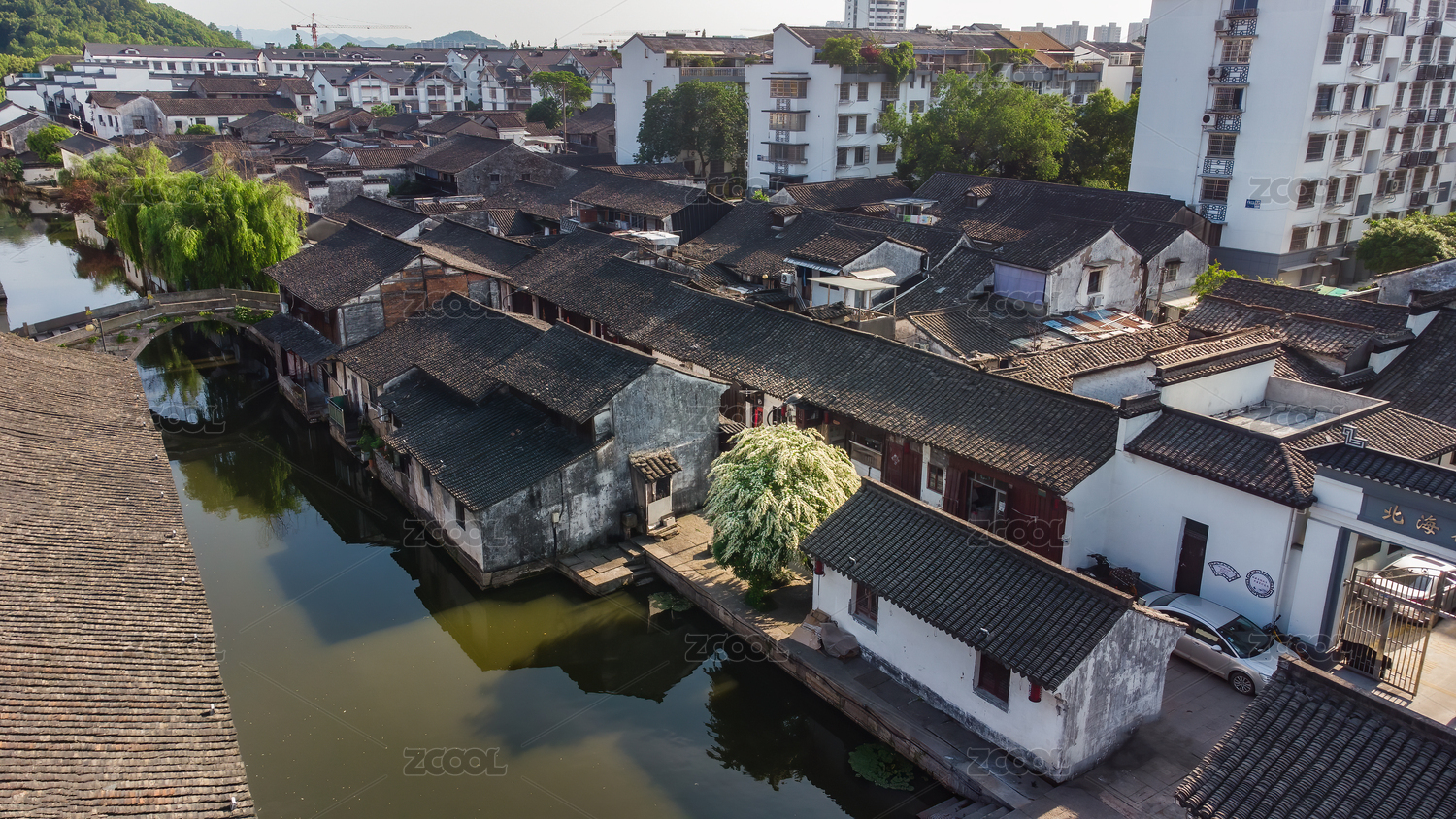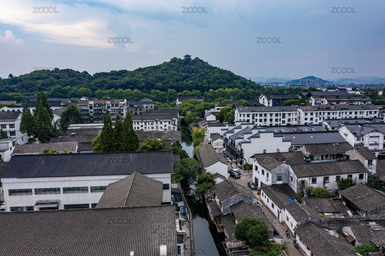 航拍浙江安昌水乡古镇