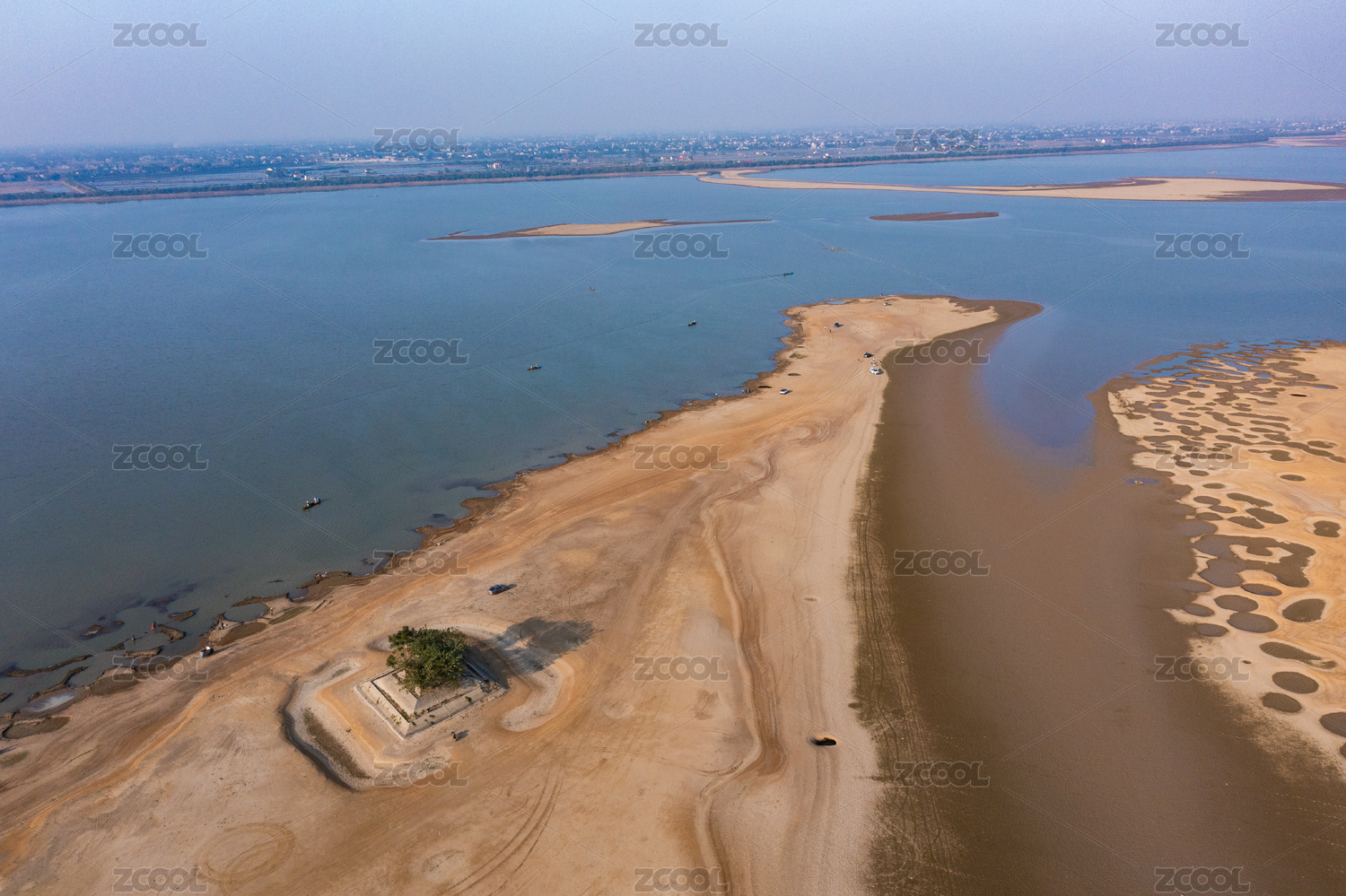 航拍湖南岳阳湘阴洞庭湖枯水期景观