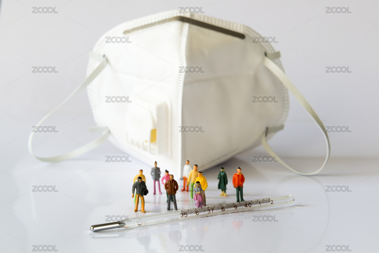 微缩创意在口罩保护下拿着气球玩耍的儿童