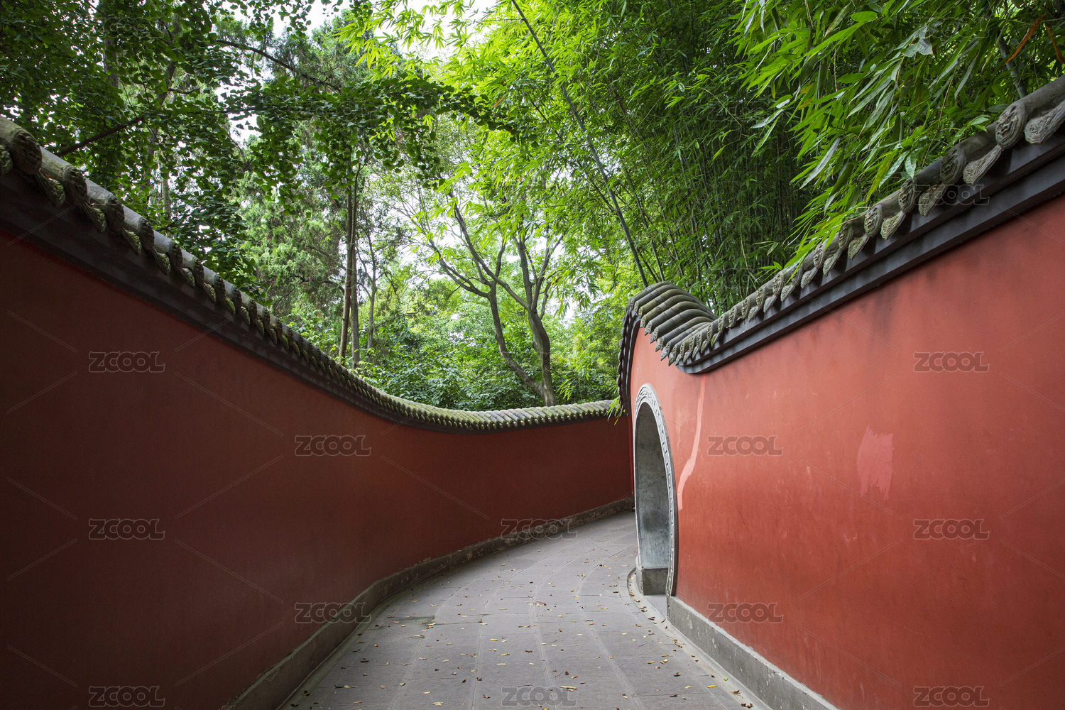 四川省成都市武侯祠听鹂苑红墙月亮门
