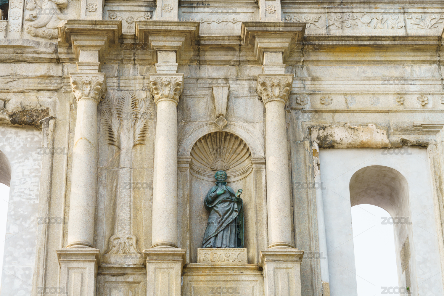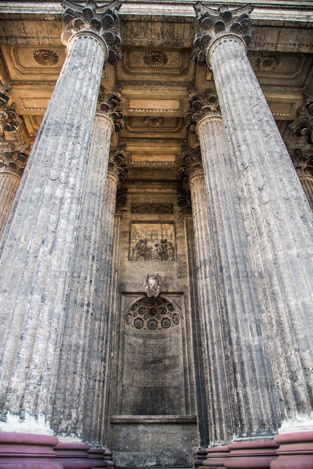 欧式复古罗马建筑石柱花纹造型特写