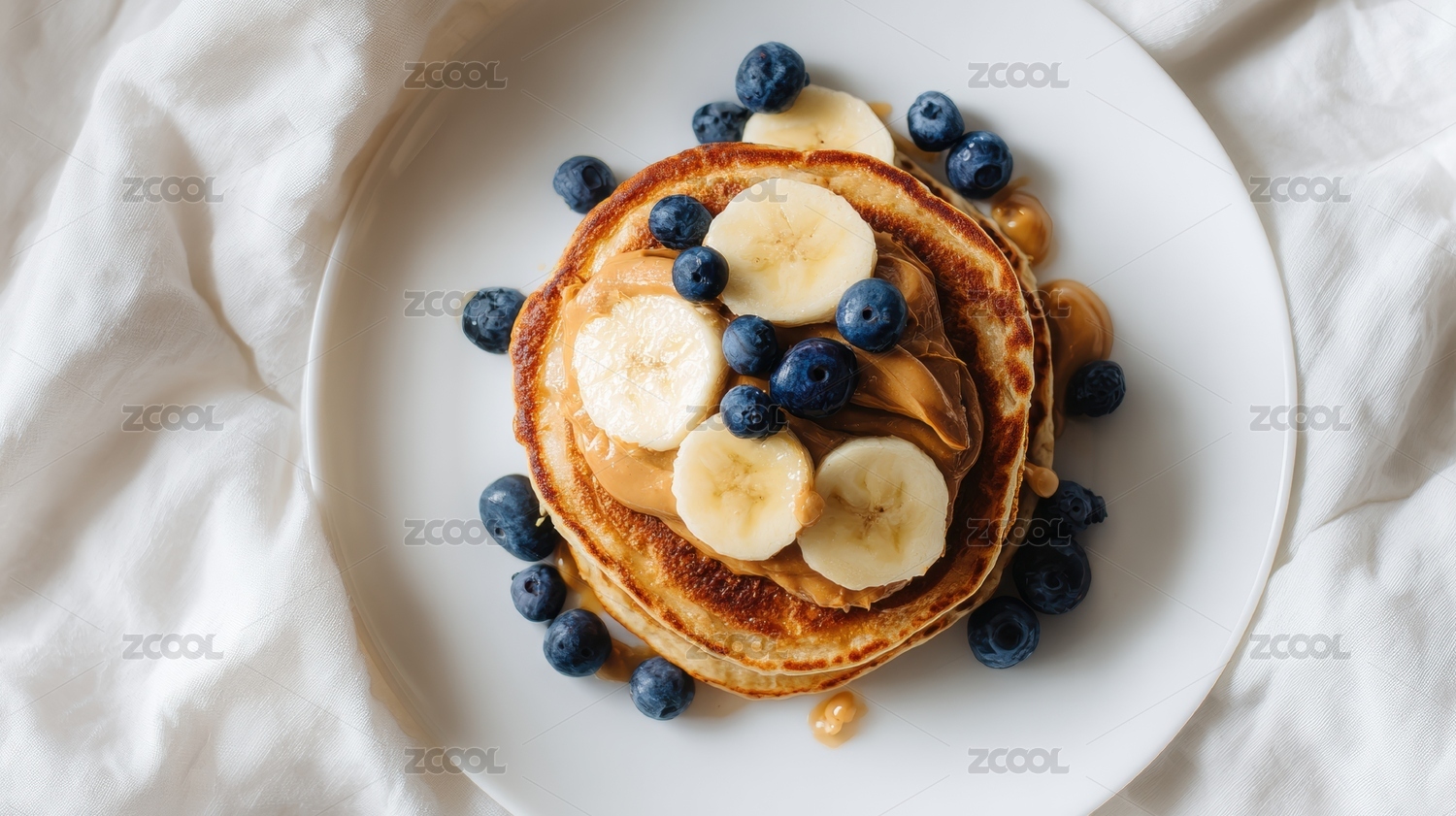 蓝莓香蕉煎饼早餐摆盘