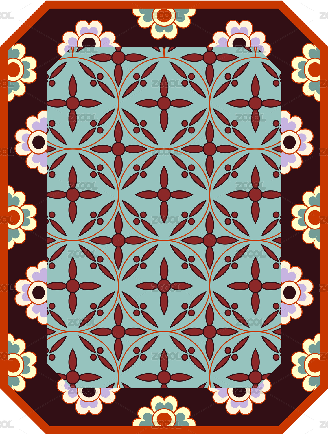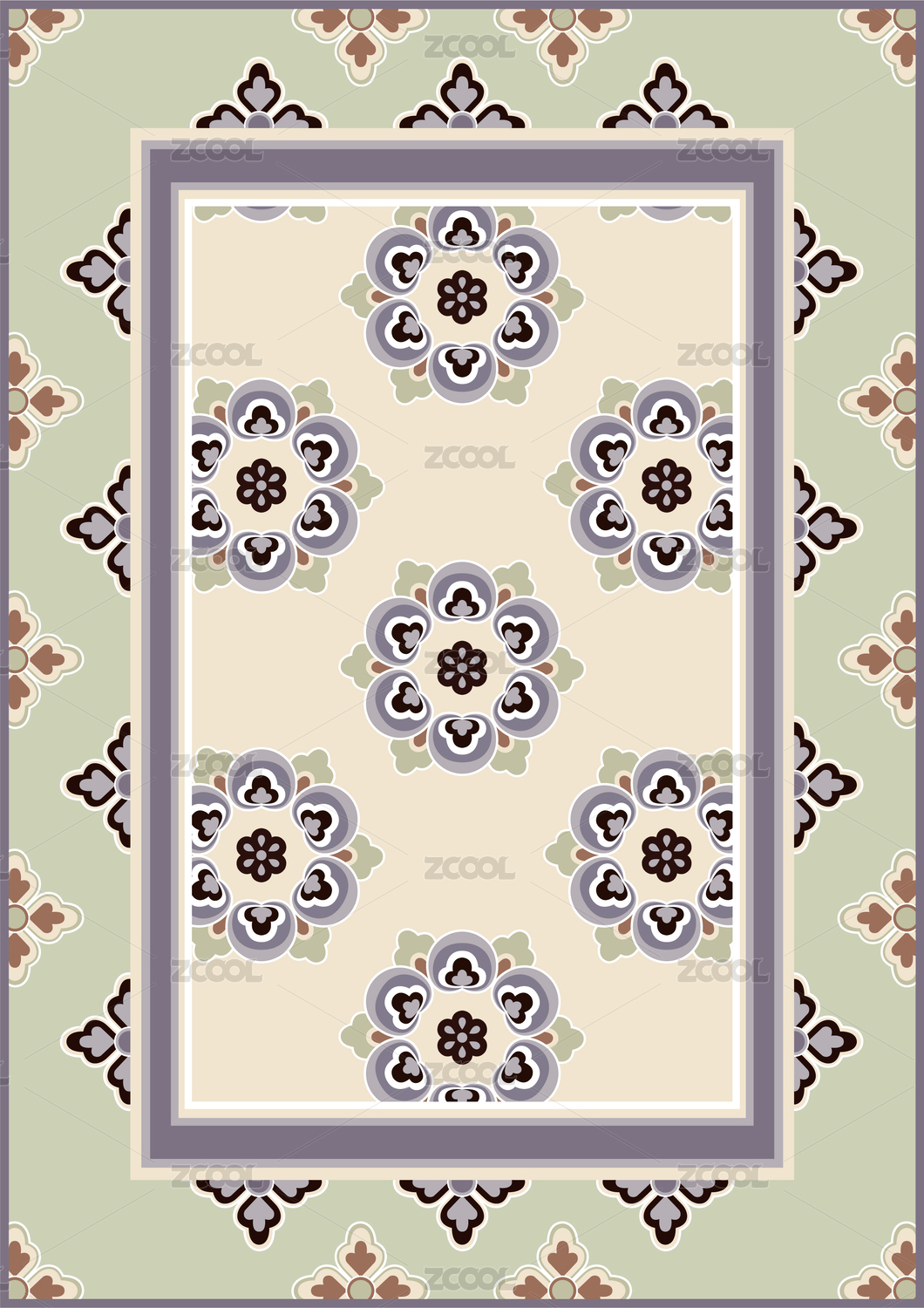 一个有绿色、紫色、红色、青色、白色、黄色多边形元素对称图案
