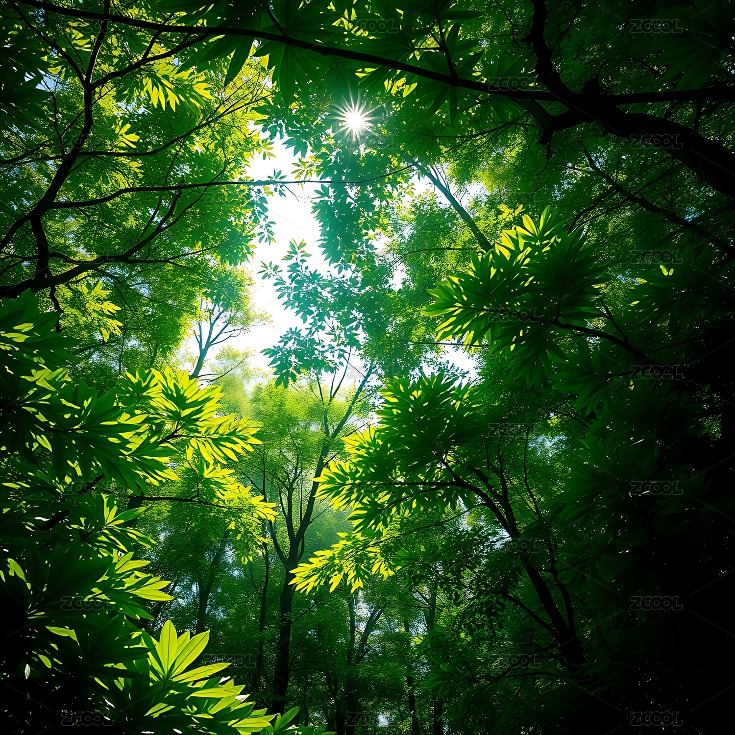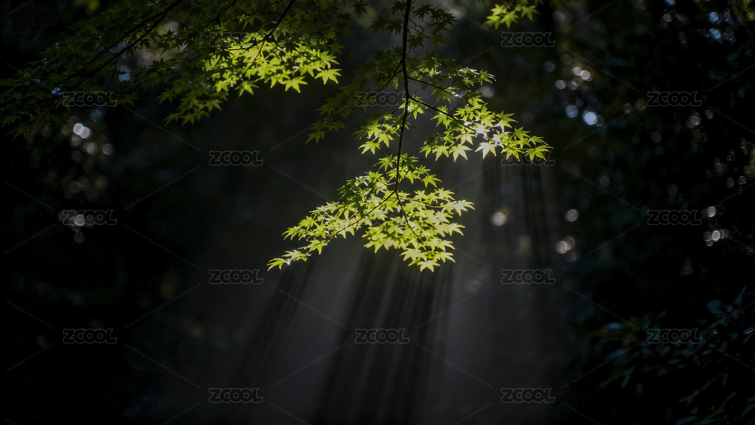 阳光透过绿叶洒满森林