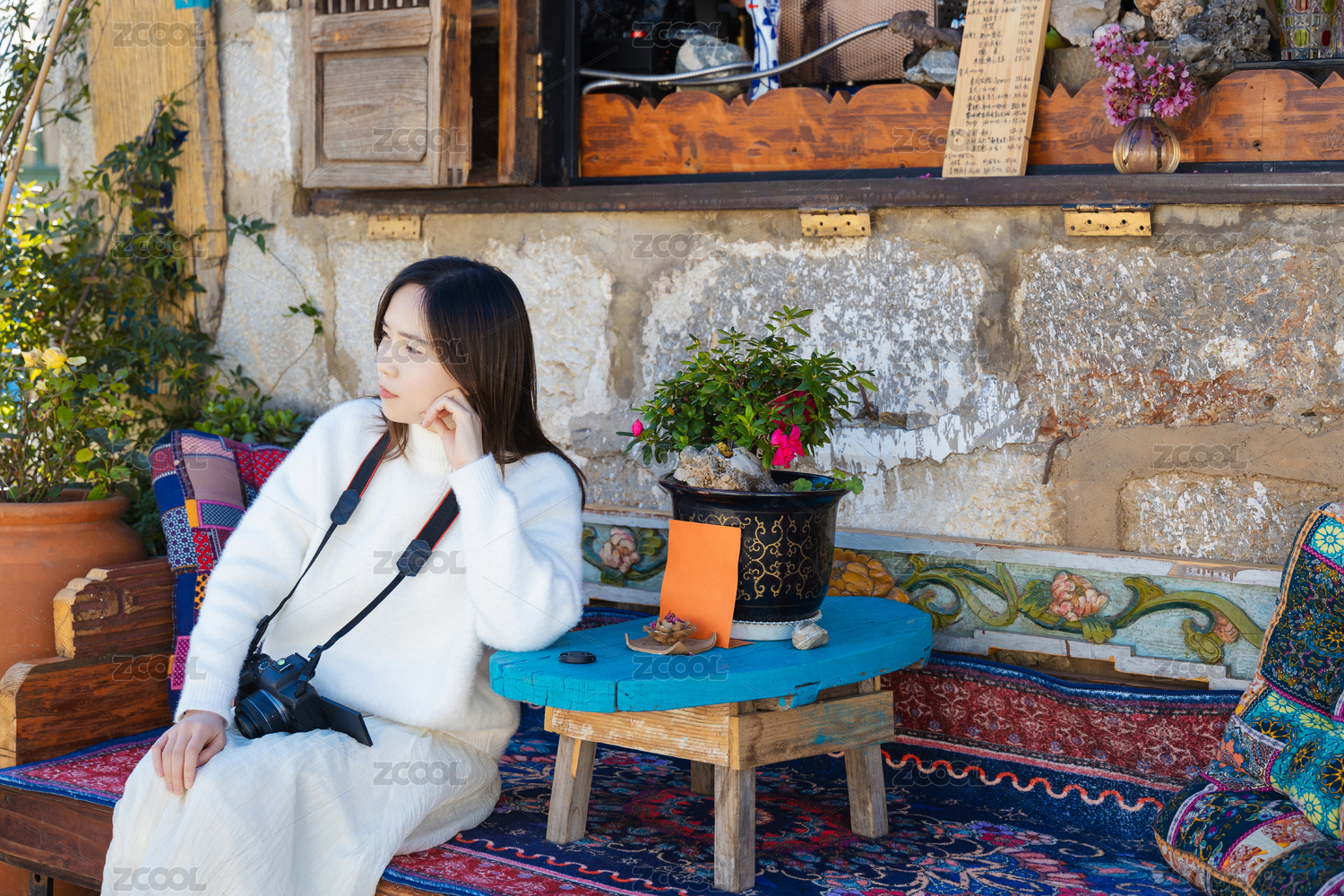 亚洲女性在中国新疆喀什古城老街看传统表演