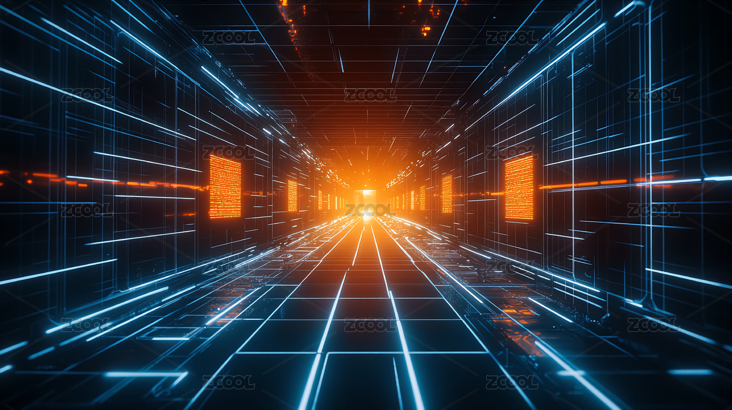 未来科技走廊的蓝色光影
