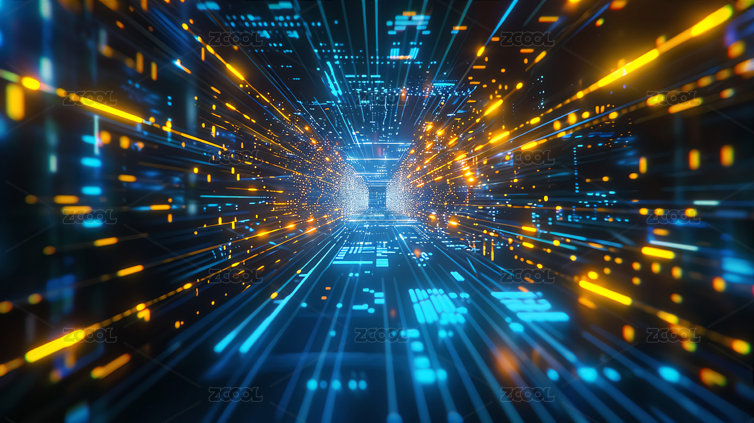 未来科技感AI光纤数字艺术隧道金融背景图