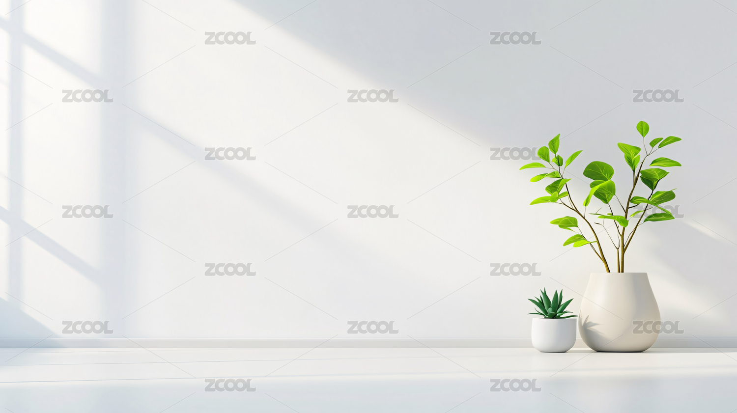 干净的室内白墙和绿植装饰简约空白渲染背景