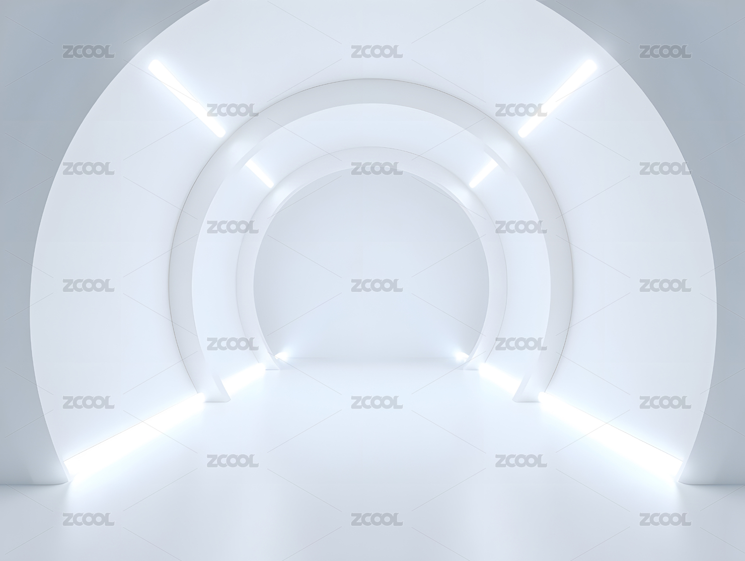 白色拱形隧道光影空间