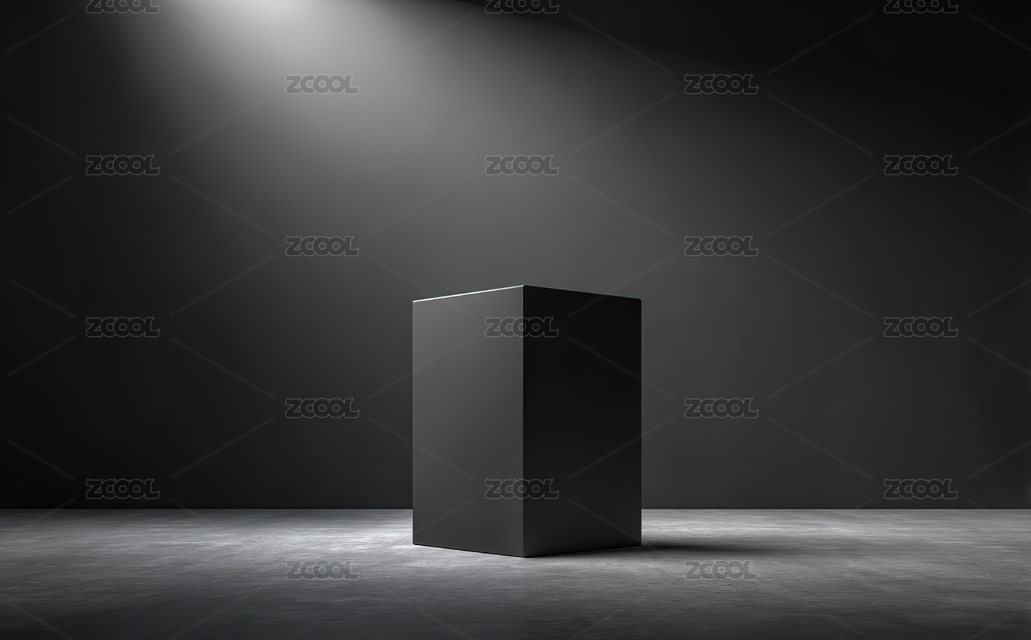 黑色立方体在聚光灯下