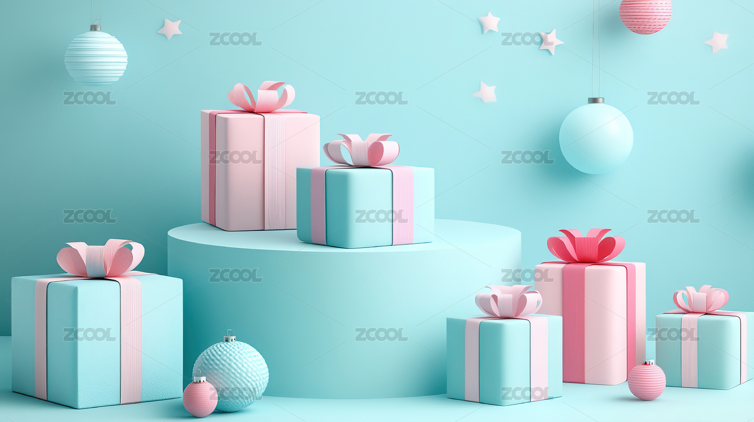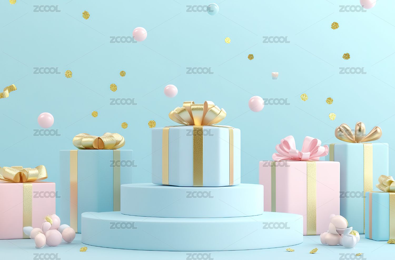 蓝色背景下的复活节彩蛋和礼物特写镜头
