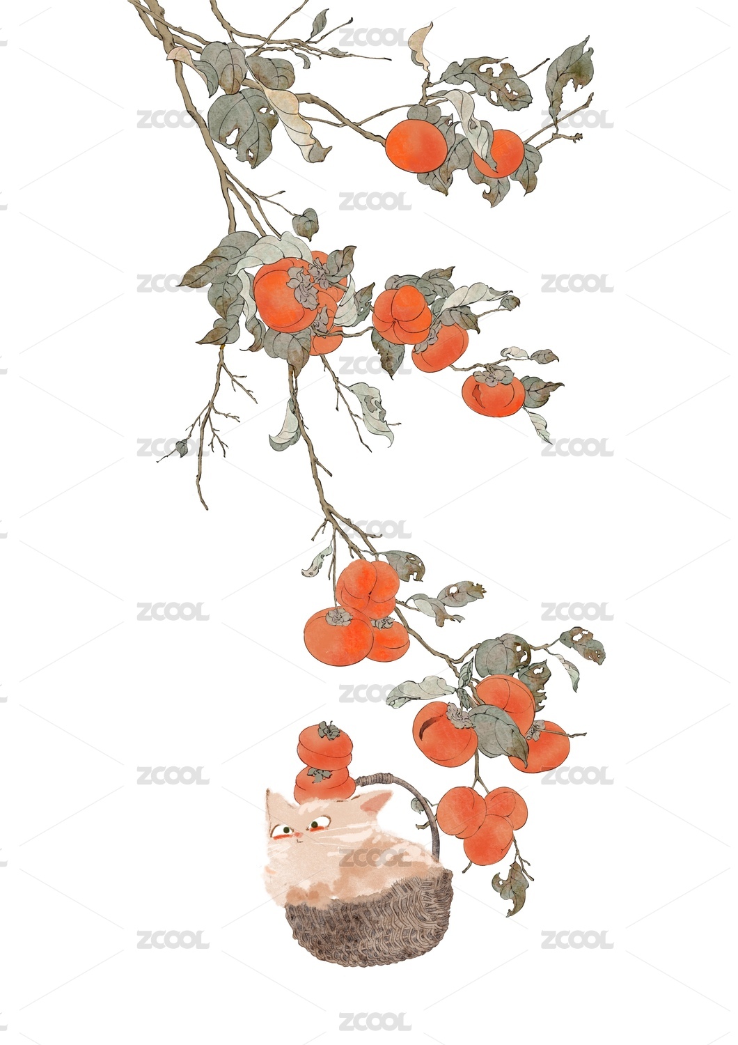 水彩手绘插画秋季蔬果小动物山楂树枝小羊