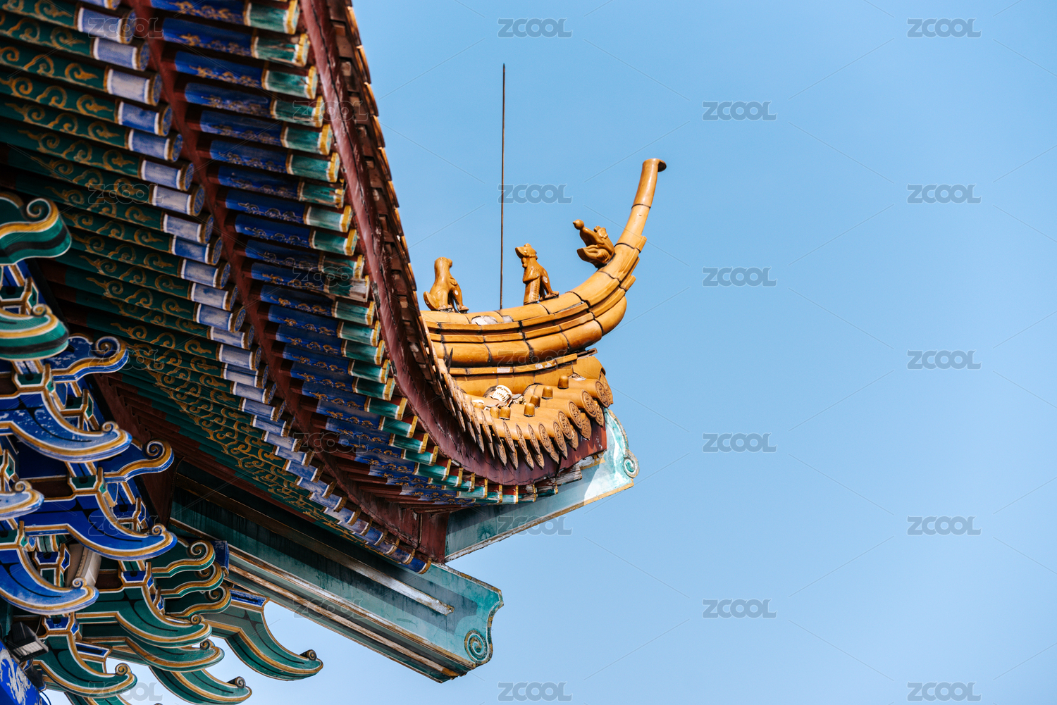 中国古典建筑屋角飞檐造型特写