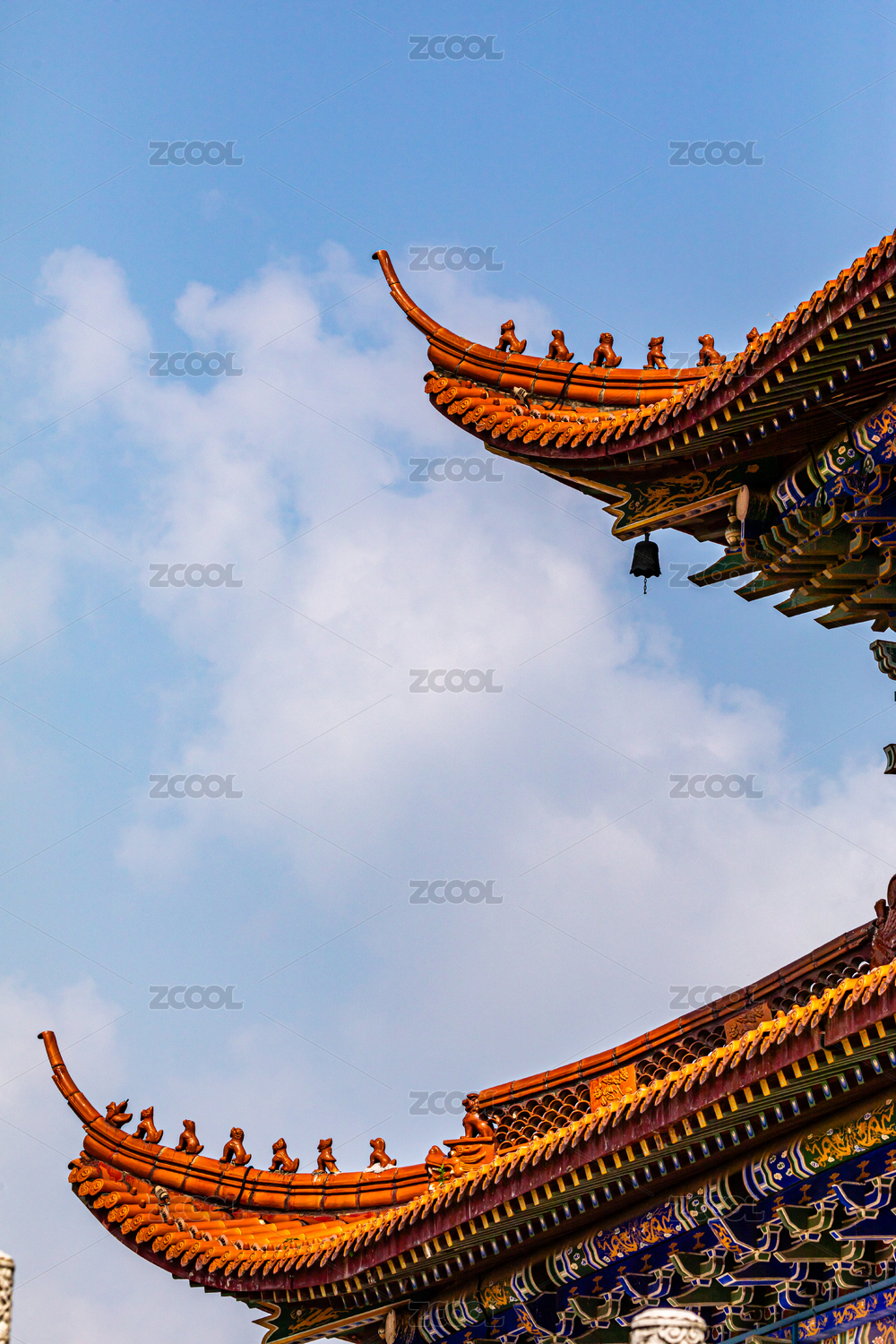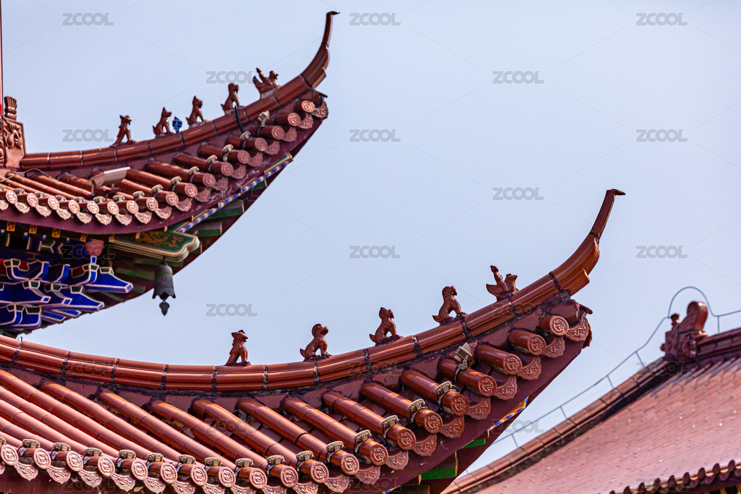 中国传统古典寺庙屋角飞檐特写