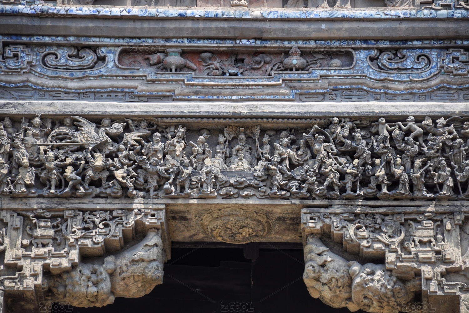 中国浙江绍兴嵊州城隍庙的砖雕建筑